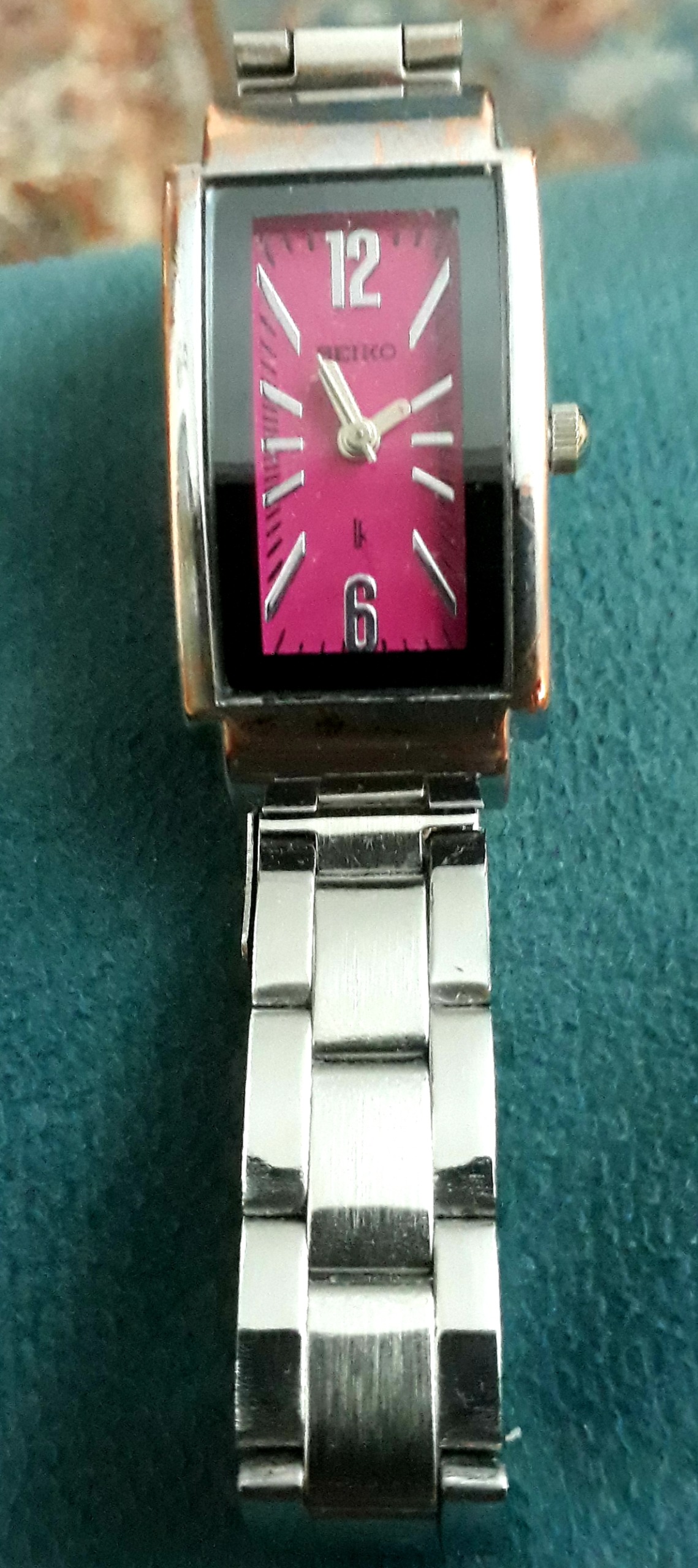 ساعت فوقالعاده خاص و بینظیر زنانه با طراحی فوقالعاده زیبا و شکیل صفحه مستطیل و رنگ فوق زیبای صفحه بنفش موتور ژاپن بند استیل 365 واقعا در حد نو نو و اورجینال میباشد