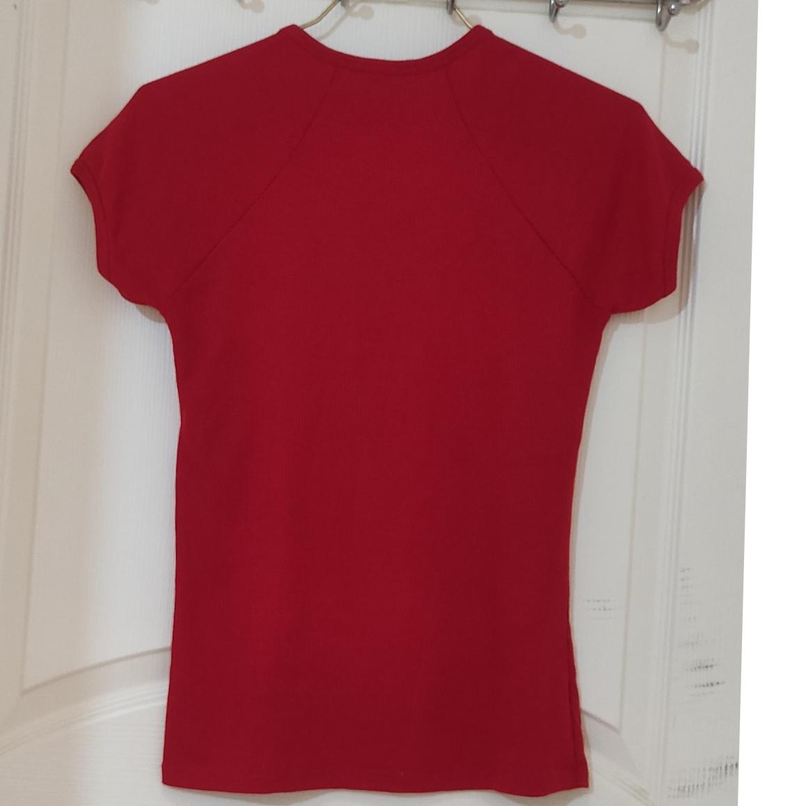 بلوز یا تیشرت در حد نو ،یکبار پوشیده شده،جنس کبریتی لطیف.کشسانی داره واز سایز38 تا44مناسبه.قرمز بسیار زیبا