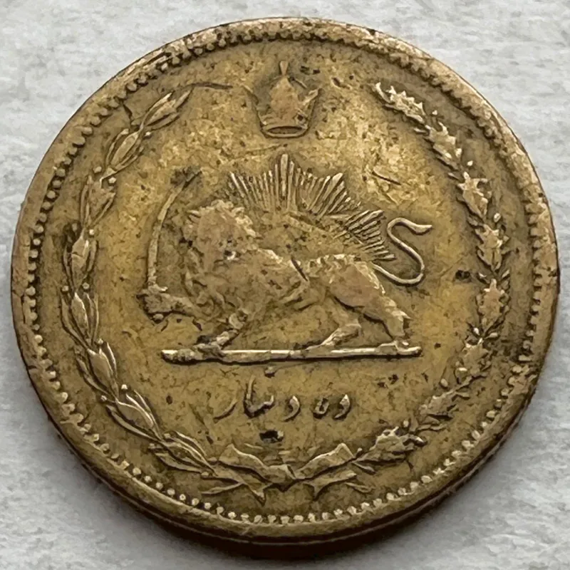 سکه ارزشمند کمیاب 10 دینار برنز 1317 رضا شاه پهلوی