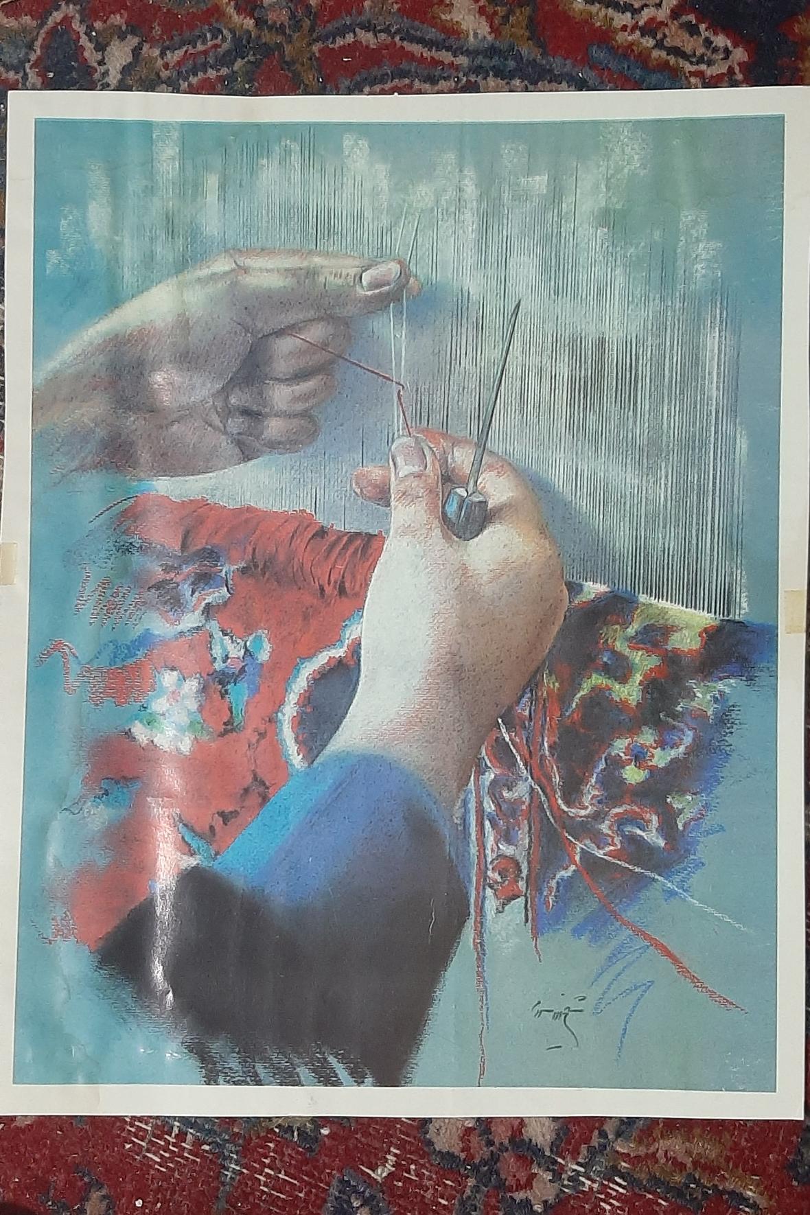 تابلوی زیبای دستان فرشباف (قدیمی)