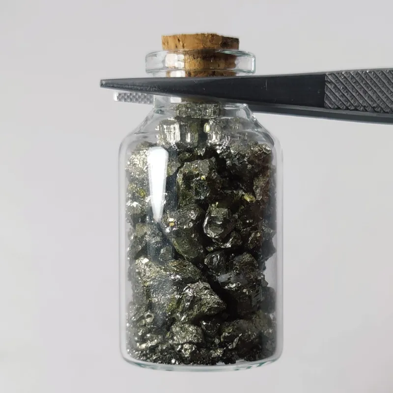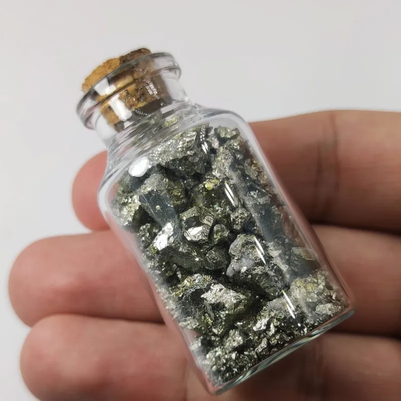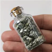سنگ ریزه های فلز پیریت معدنی در بطری فانتزی