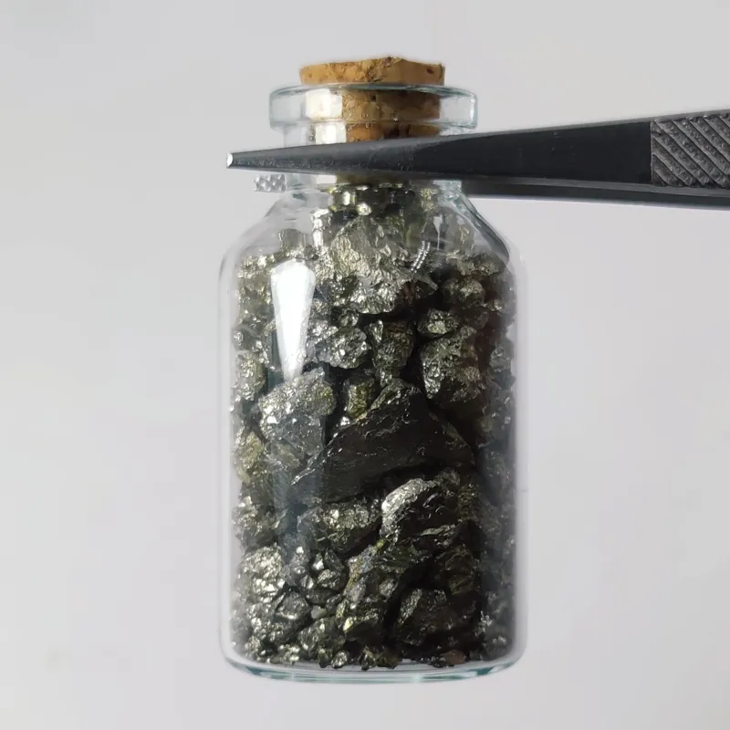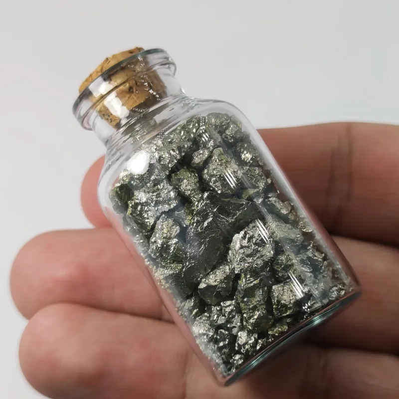 سنگ ریزه های فلز پیریت معدنی در بطری فانتزی
