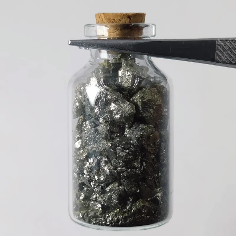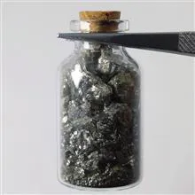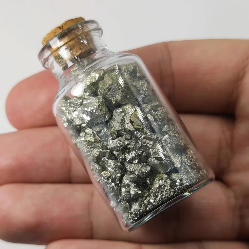 سنگ ریزه های فلز پیریت معدنی در بطری فانتزی