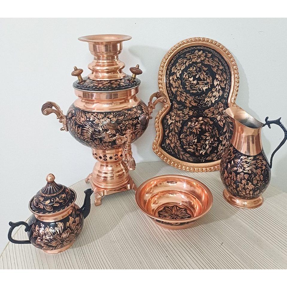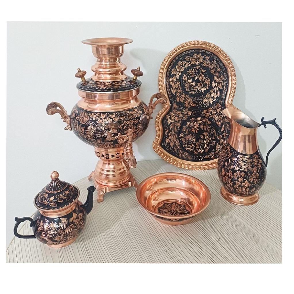سرویس سماور الماس تراش مسی سایز 4لیتری