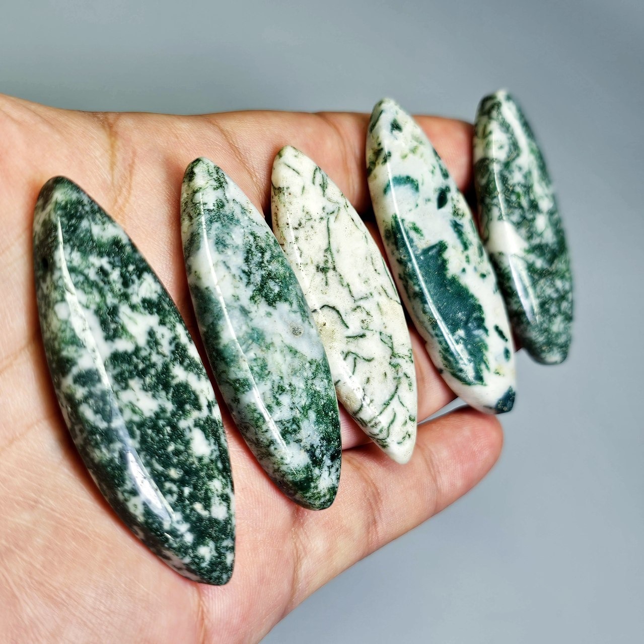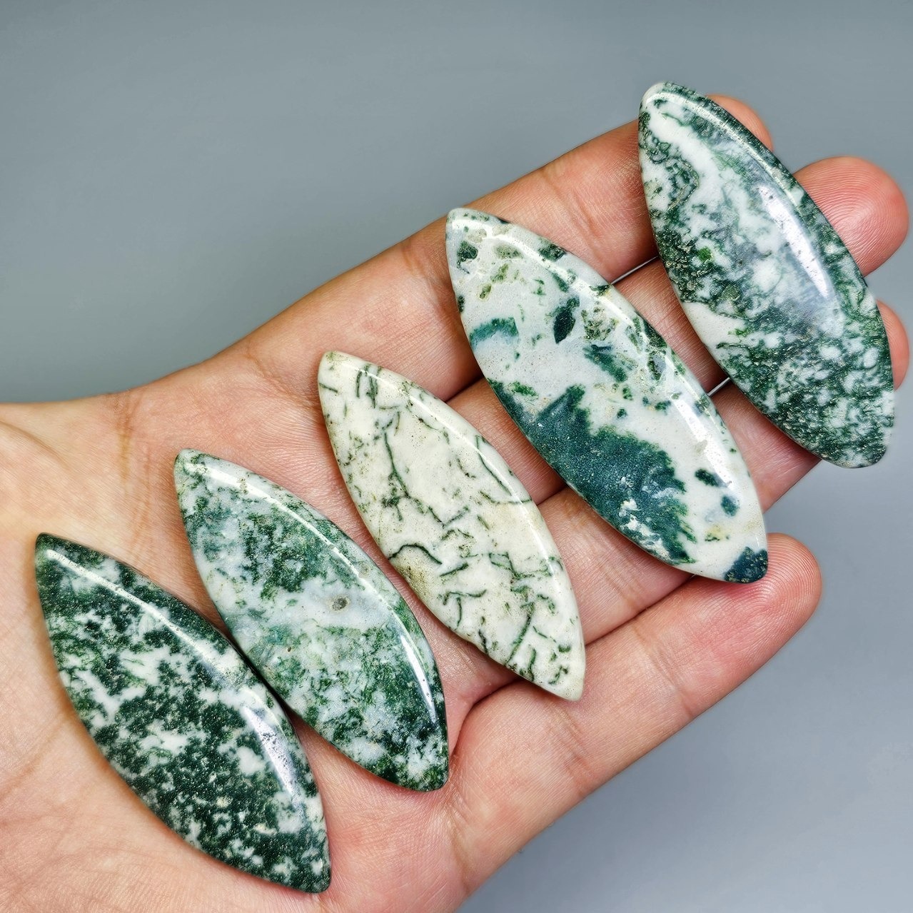 پک 5 عددی نگین های درشت سنگ عقیق خزه ای معدنی