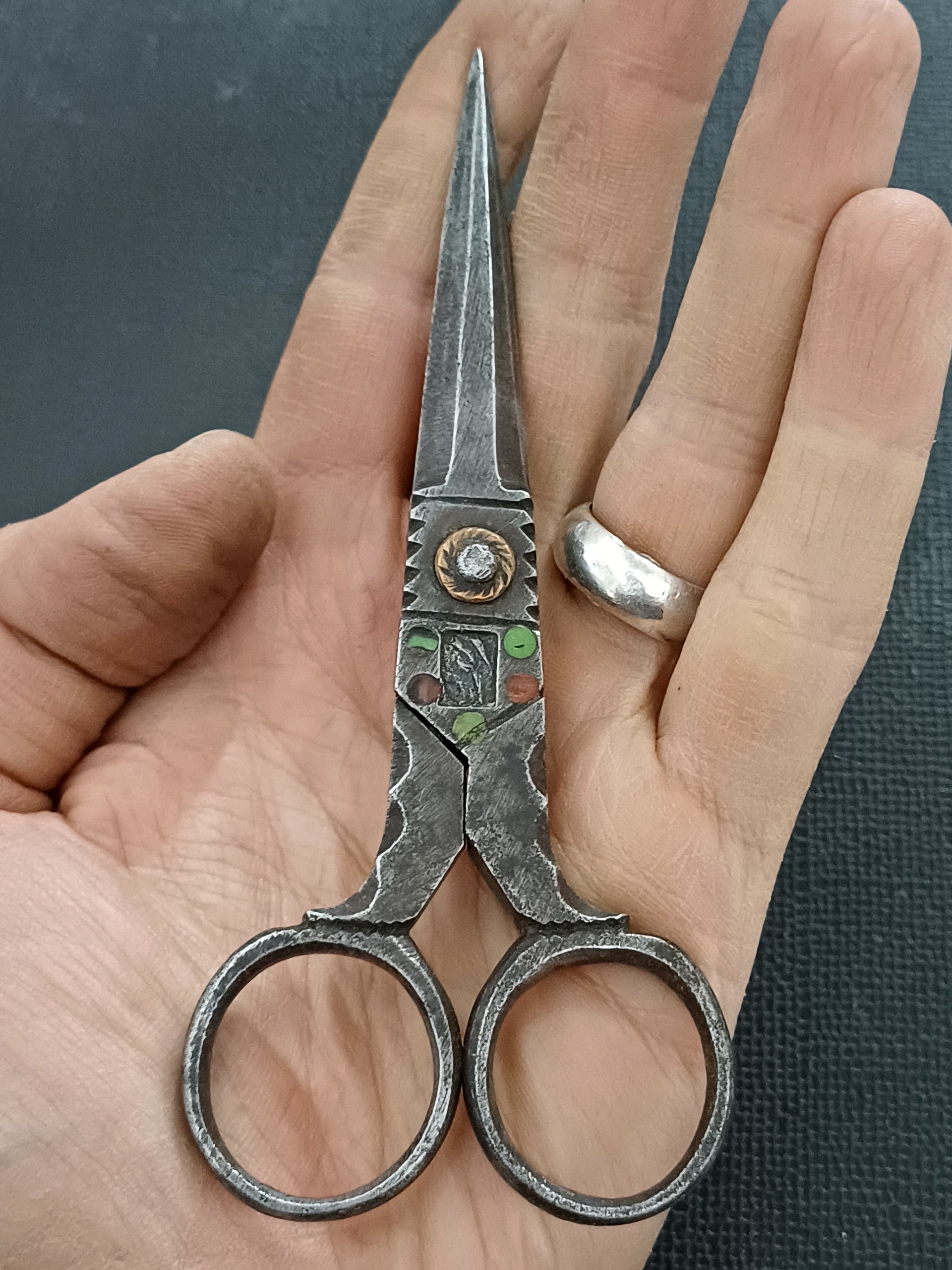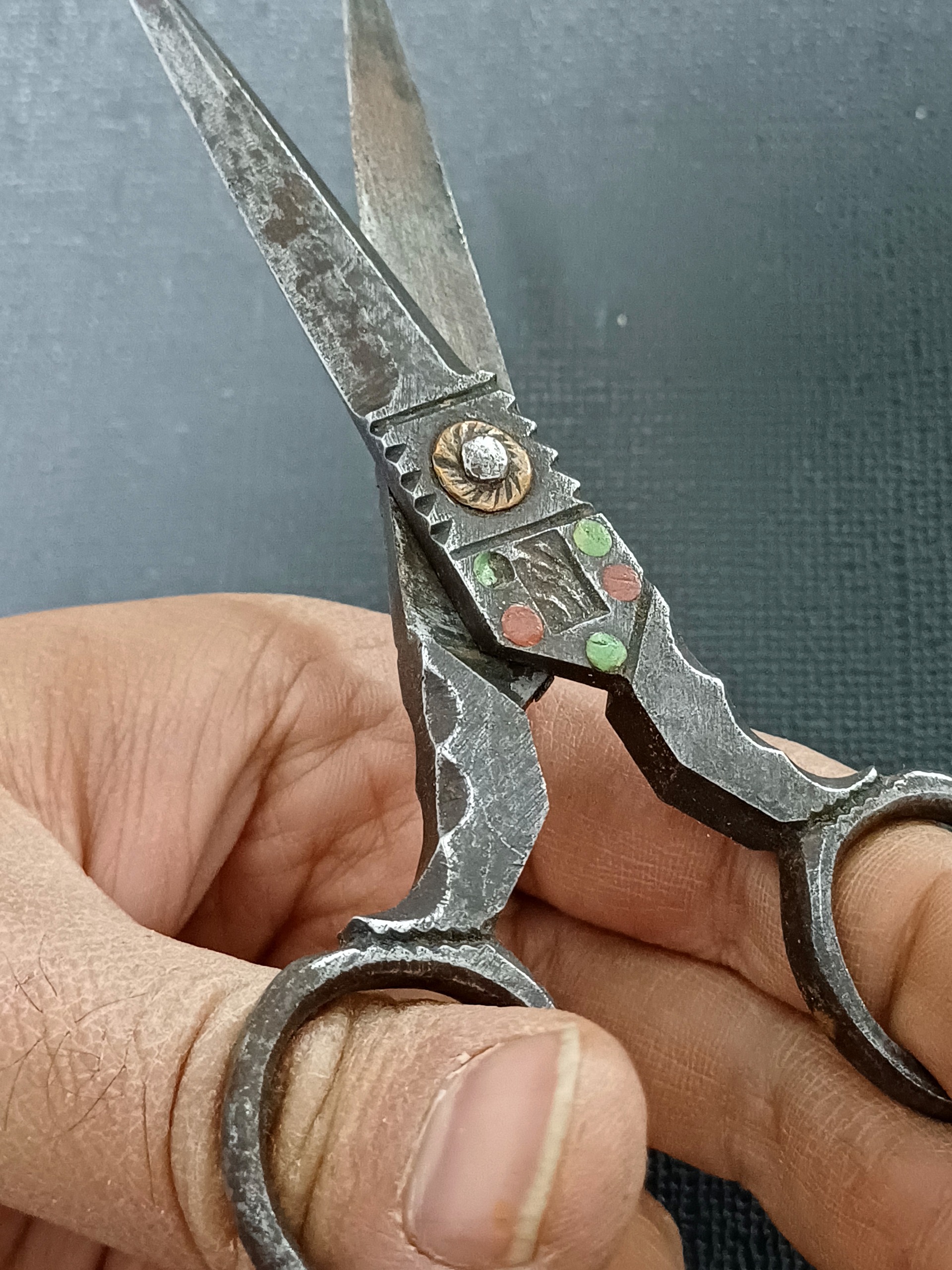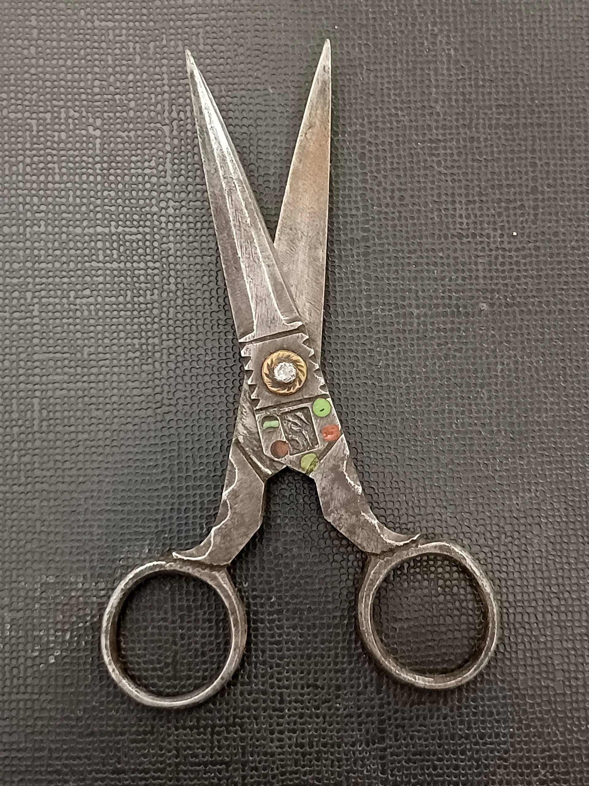 قیچی قاجاری دستساز فولادی پرکار بسیار تمیز و بکر