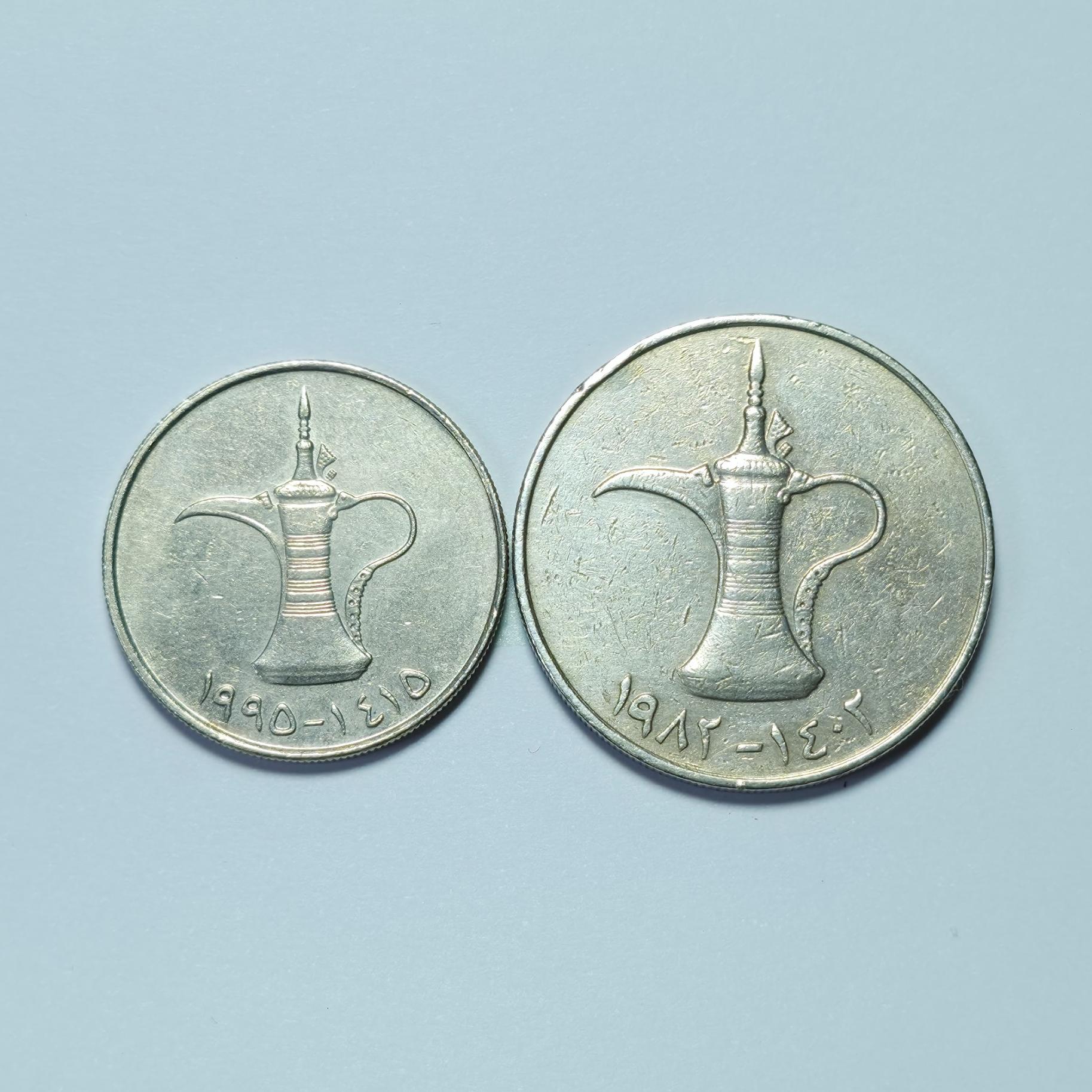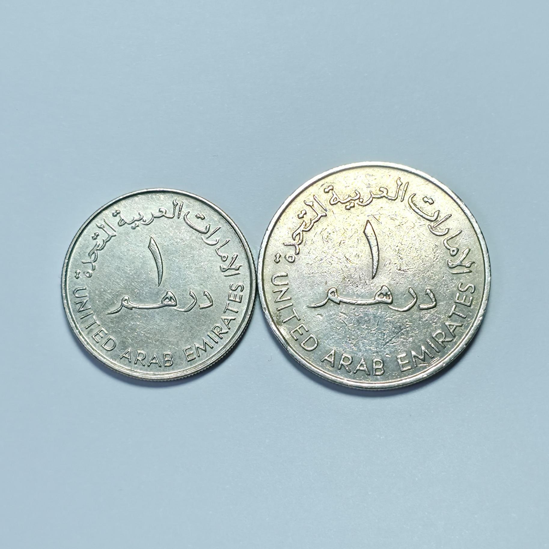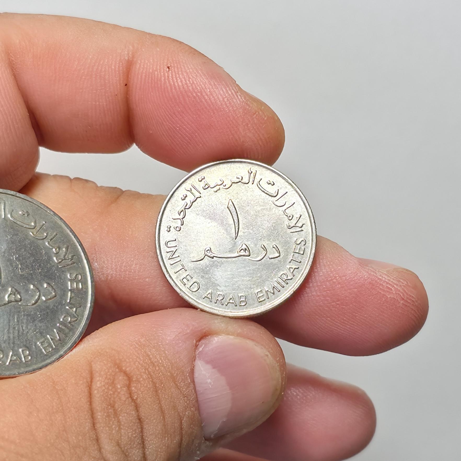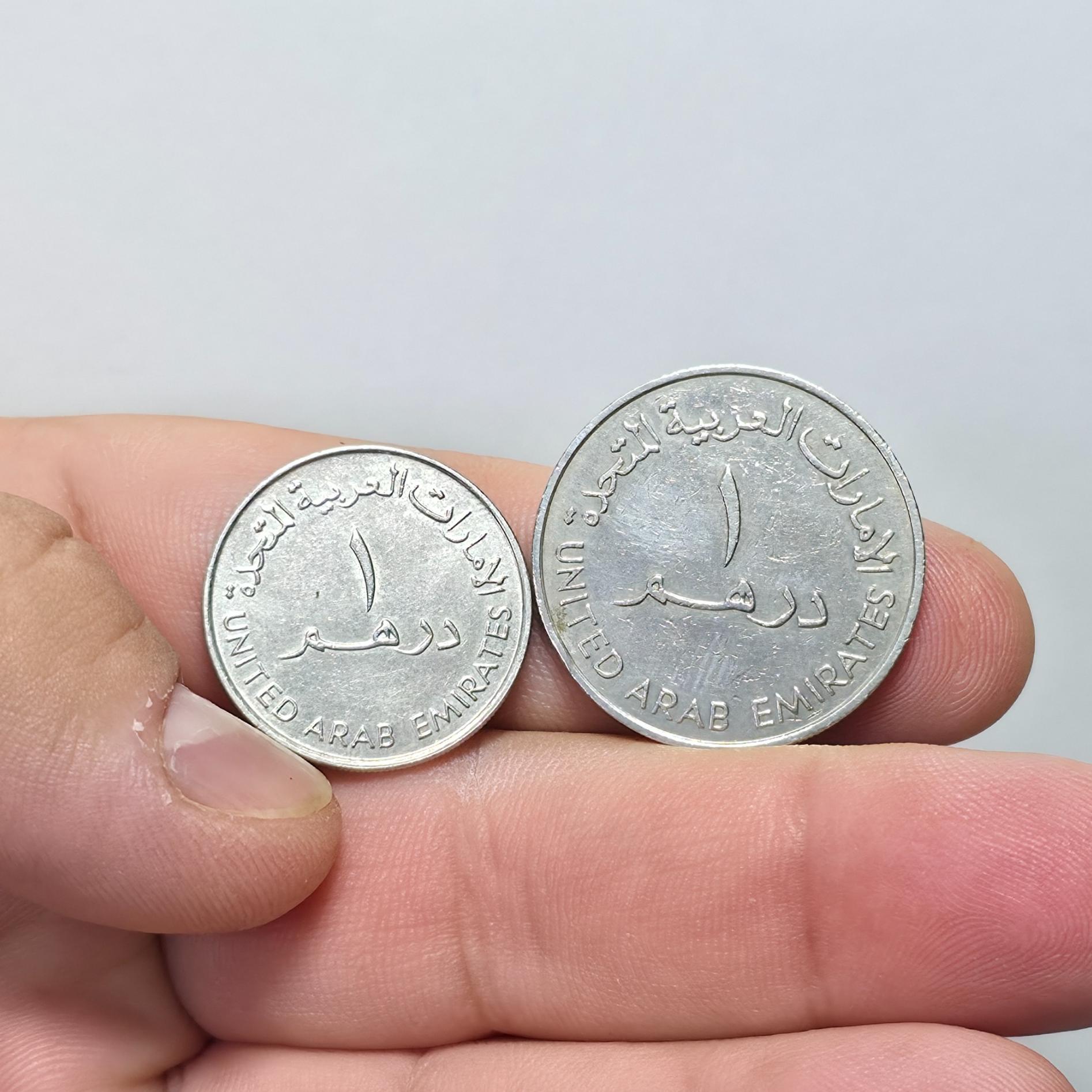 2 عدد سکه 1 درهمی امارات در 2 سایز بزرگ و کوچک با این کیفیت کمیاب هست