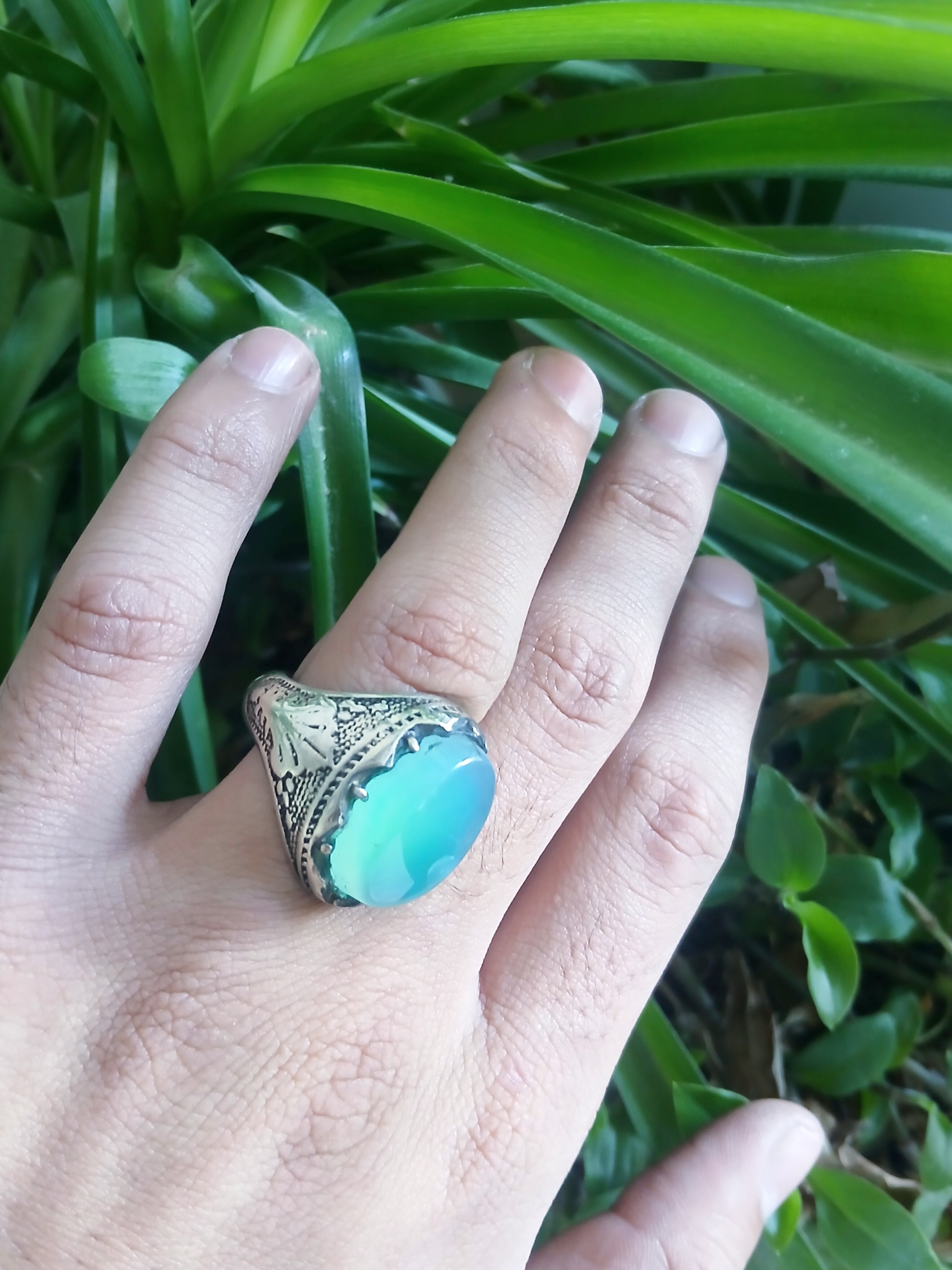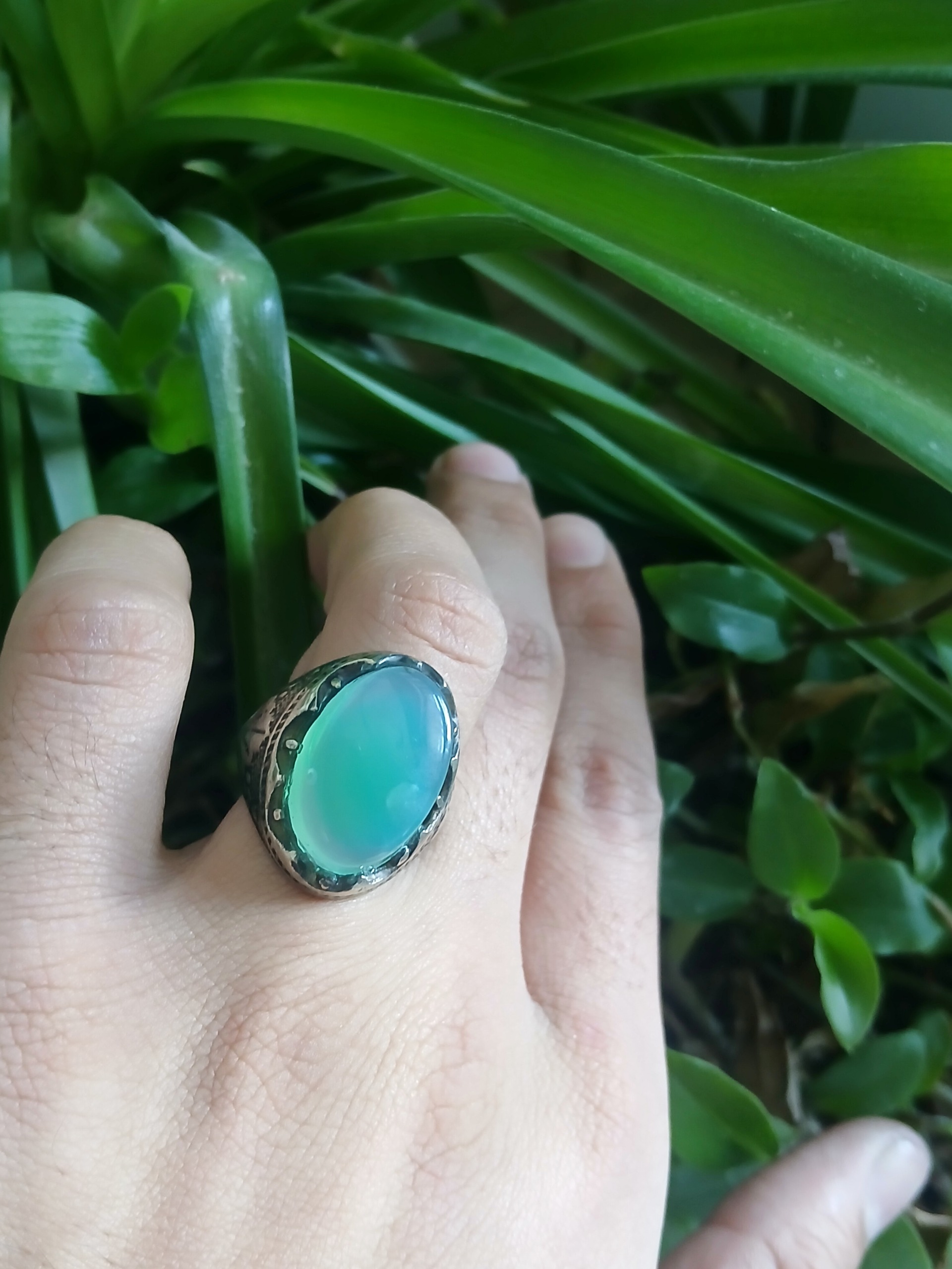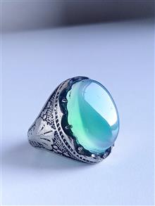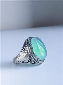 انگشتر عقیق سبز کاهویی حک 925 دار