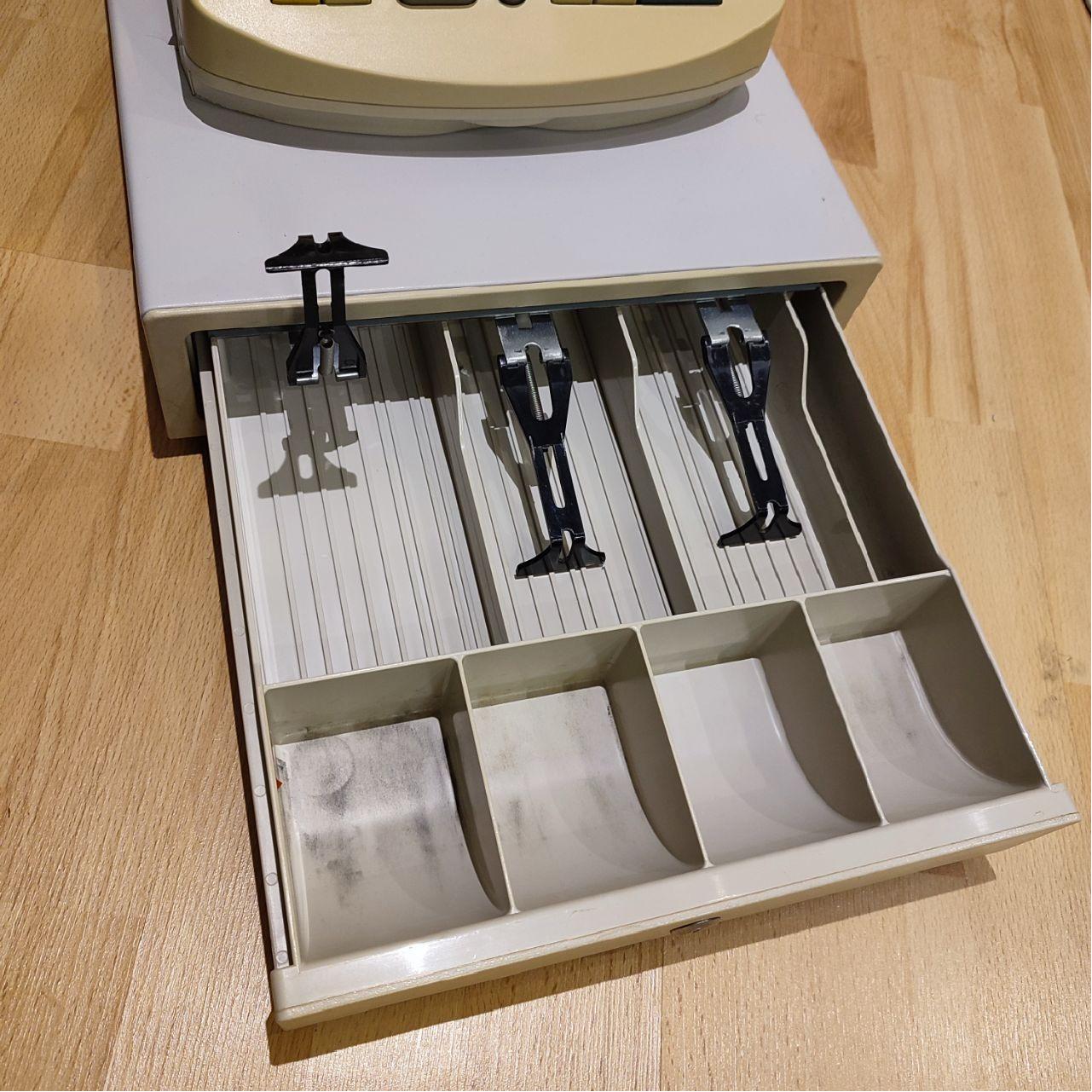 کاملا سالم و آماده کار، چاپگر سالم، درب برقی صندوق سالم، صفحه نمایش سالم، تمام دکمه ها سالم، جعبه ندارد.