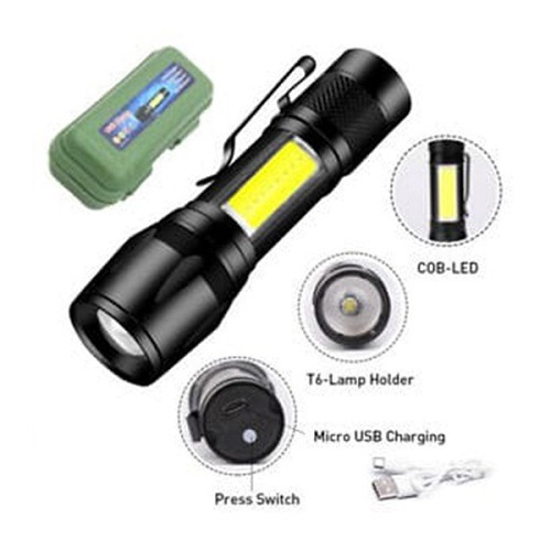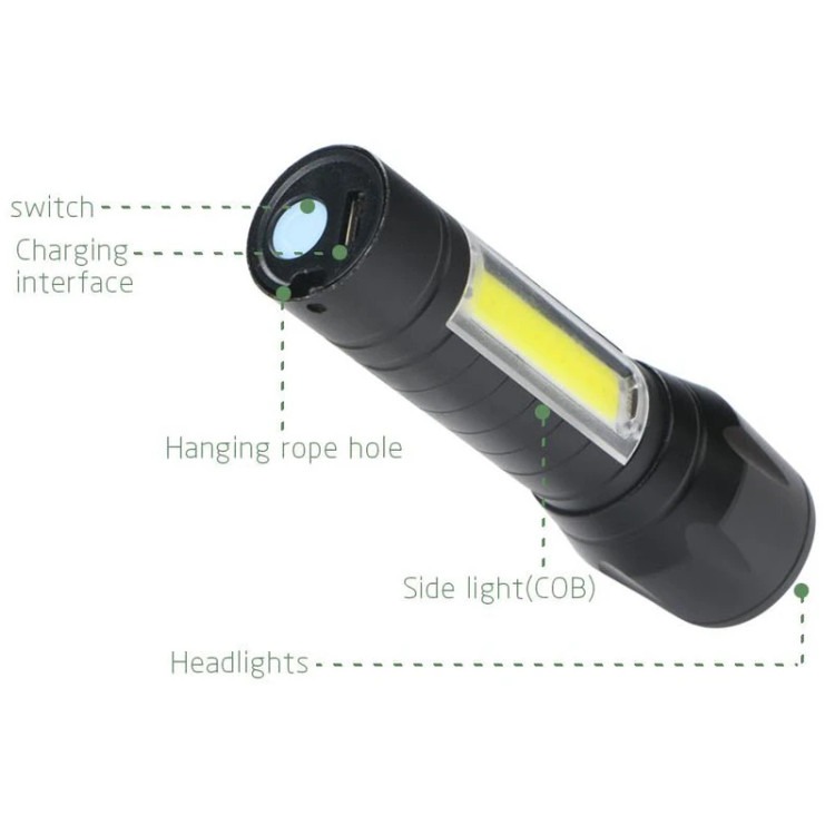 چراغ قوه شارژی بدنه فلزی وزن 50 گرم ابعاد 2.3*2.5*10 سانتی متر جنس بدنه آلومینیومی نوع کلید:فشاری چهار حالته ثابت، چشمک زن، چراغ COB روی دسته و خاموش نوع باتری: لیتیوم یونی نوع چراغ لامپ:1 عدد لامپ LED و 1 عدد چراغ جانبی COB نشانگر LED قابلیت تنظیم کانون مقاوم در برابر رطوبت مناسب برای استفاده روزانه و مناسب برای کمپینگ، طبیعت گردی، ماهیگیری و استفاده در محیط های کم نور ، تاریک
