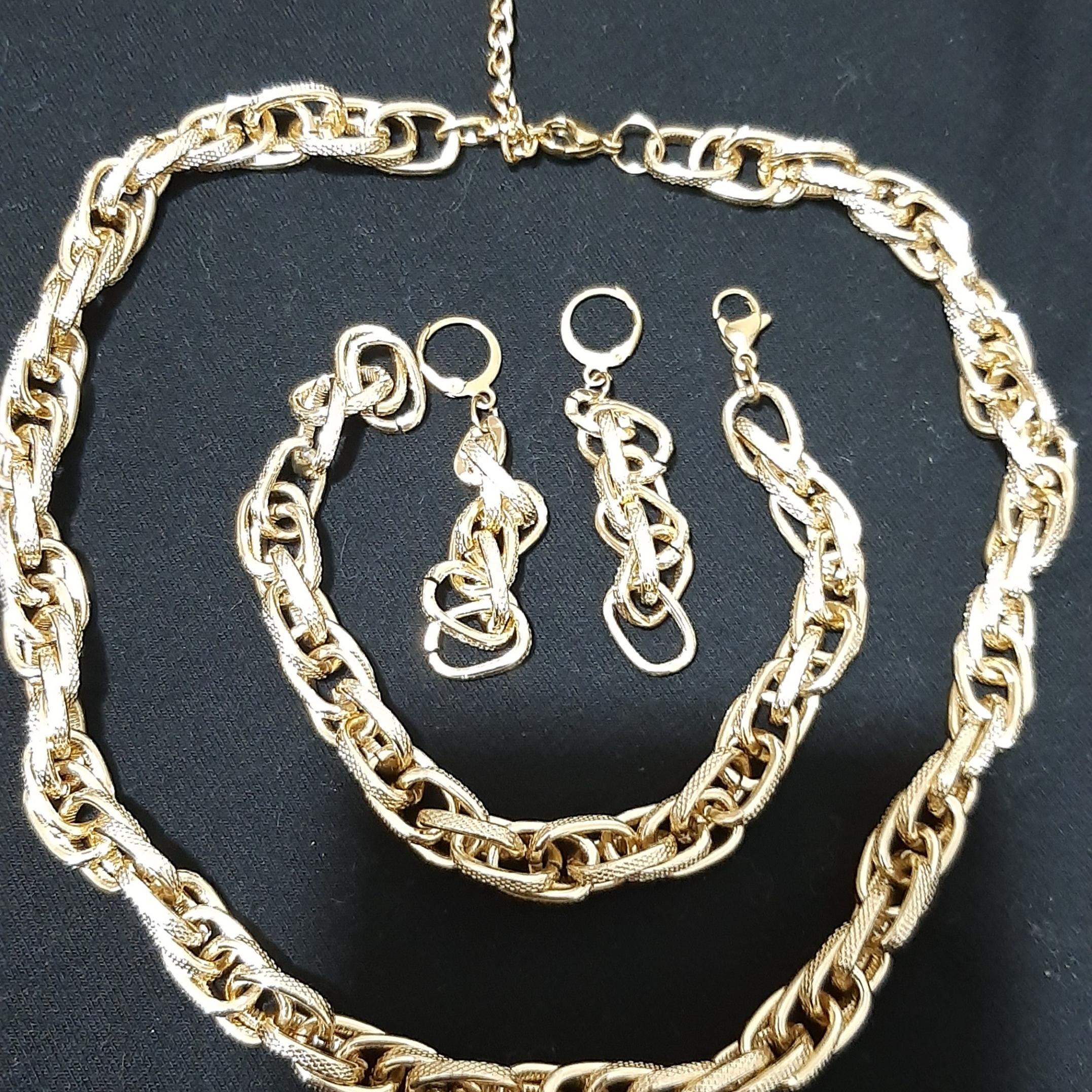 ست کامل سه تیکه رنگ ثابت شامل گردنبند، گوشواره و دستبند.