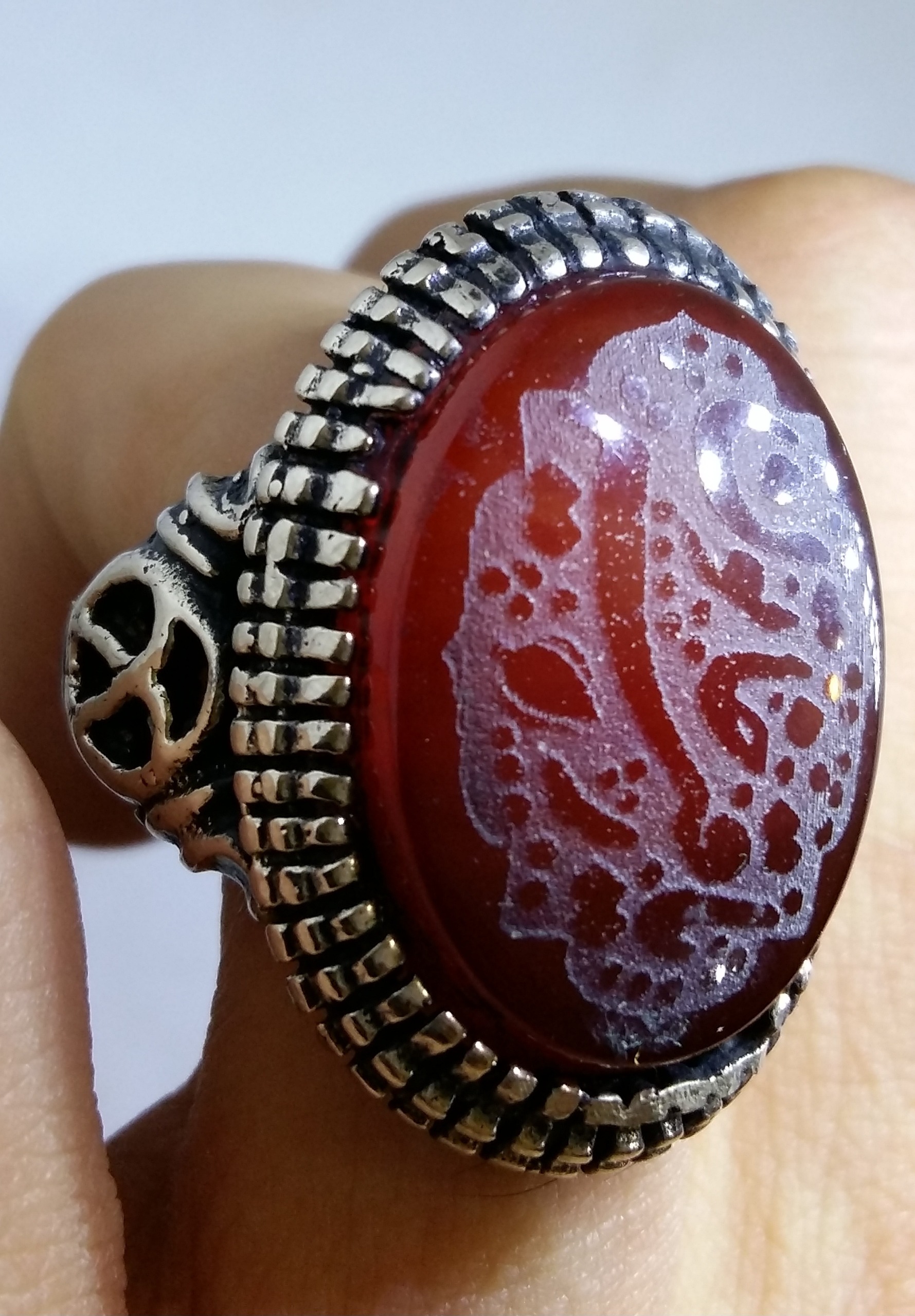 انگشتر سلطنتی عقیق سرخ معدنی با حک یا رقیه خاتون