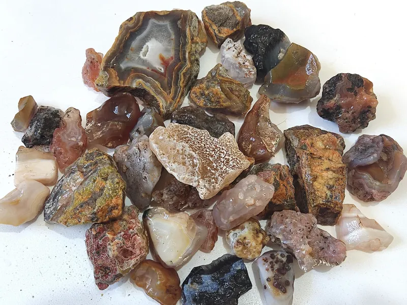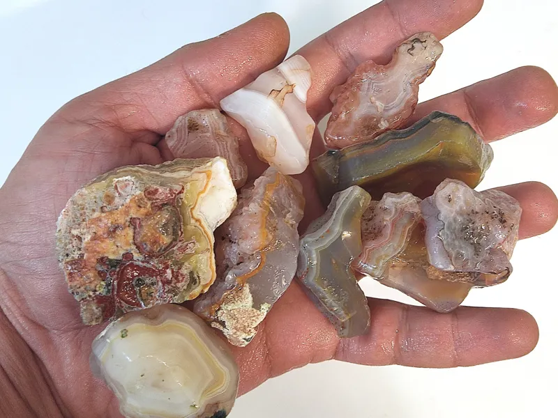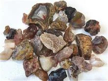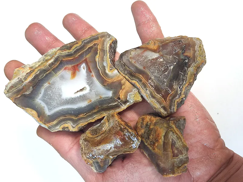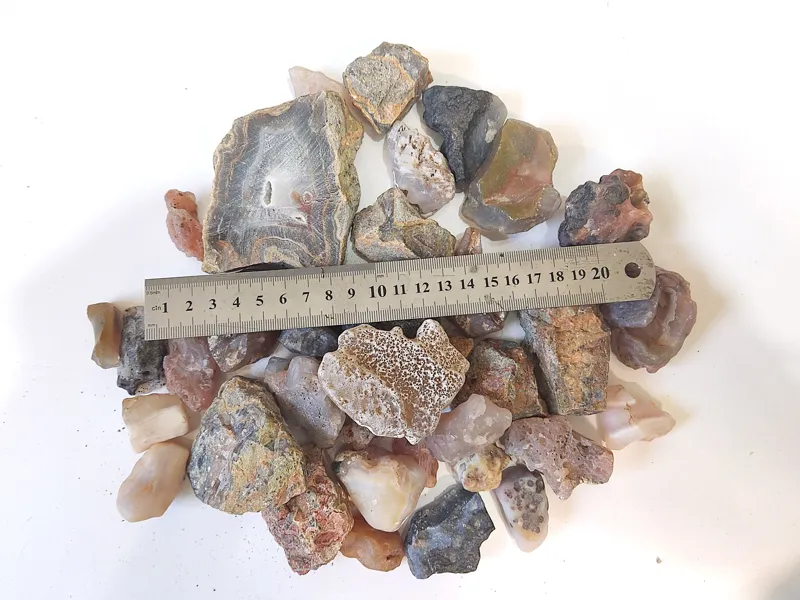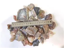 کیفیت عالی با رگه های سرخ و زرد و... مناسب تراش نگین های سه پوست و باباقوری و سلیمانی - عکس ها در نور طبیعی گرفته شده و سنگ ها خیس شده اند. عکس خشک در کنار خطکش