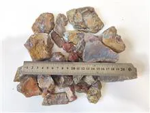 کیفیت عالی با رگه های سرخ و زرد مناسب تراش نگین های سه پوست و باباقوری و سلیمانی - عکس ها در نور طبیعی گرفته شده و سنگ ها خیس شده اند. عکس خشک در کنار خطکش