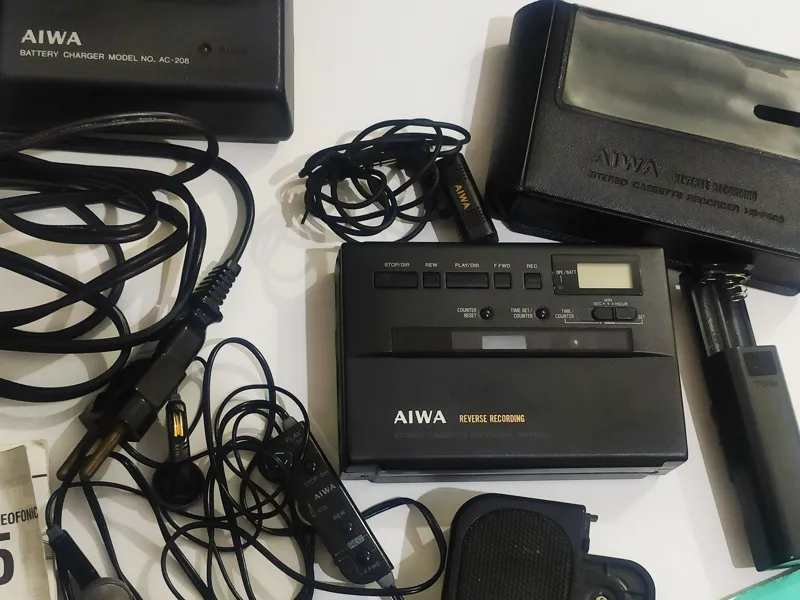 ((پک کامل شامل : واکمن ، جلد چرمی واکمن ، هدفون ریموت دار ، میکروفون یقه ای استریو ، شارژر فست باتری آدامسی به همراه سری تبدیل برق فابریک که باتری آدامسی موجود هست اما احتمالا به علت مرور زمان شارژ نشود ، دفترچه ی راهنما و مشخصات ، جاباتری اکسترنال ، اسپیکر اکسترنال ))