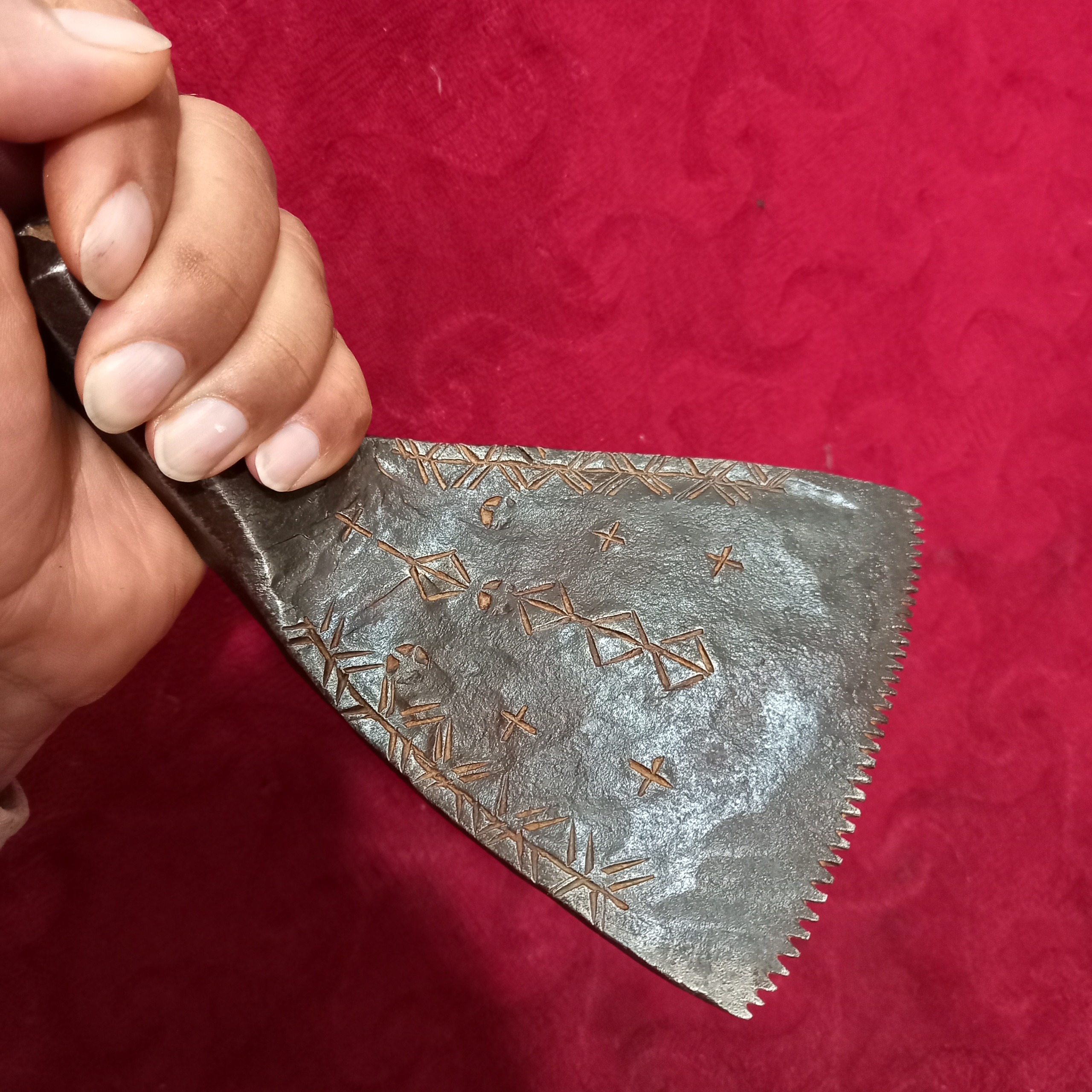 شانه قالیبافی فولاد نقشدار کمیاب قاجاری