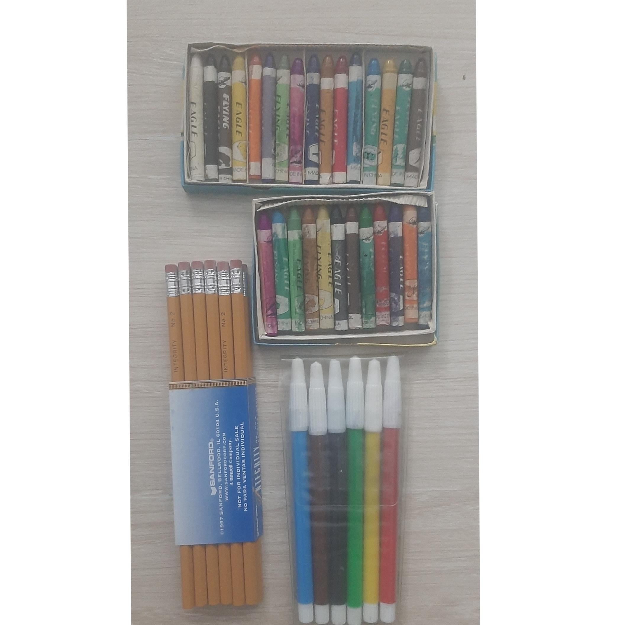 1- یکدست مداد شمعی 16 رنگ 2_ یکدست مداد شمعی 12 رنگ 3_ یکدست ماژیک 6 رنگ رنگین کمان 4_ یک بسته 12عددی مداد مشکی آمریکایی ،، قیمت برای کل مجموعه میباشد.