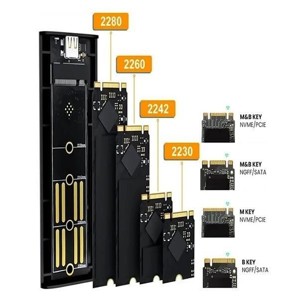 باکس M.2 NVME SSD اوسکو مدل OSND1 محصولی از برند اوسکو است که از بدنه آلومینیومی با کیفیت عالی ساخته شده است . این بدنه در برابر فشار و ضربات ، مقاومت قابل قبولی داشته و بدنه فلزی آن مانند یک هیت سینک عمل می کند . این قاب دارای خروجی TYPE C می باشد که از طریق کابل به TYPE A نیز قابل تبدیل است. این محصول قابلیت پشتیبانی از M.2 SATA را نیز دارد