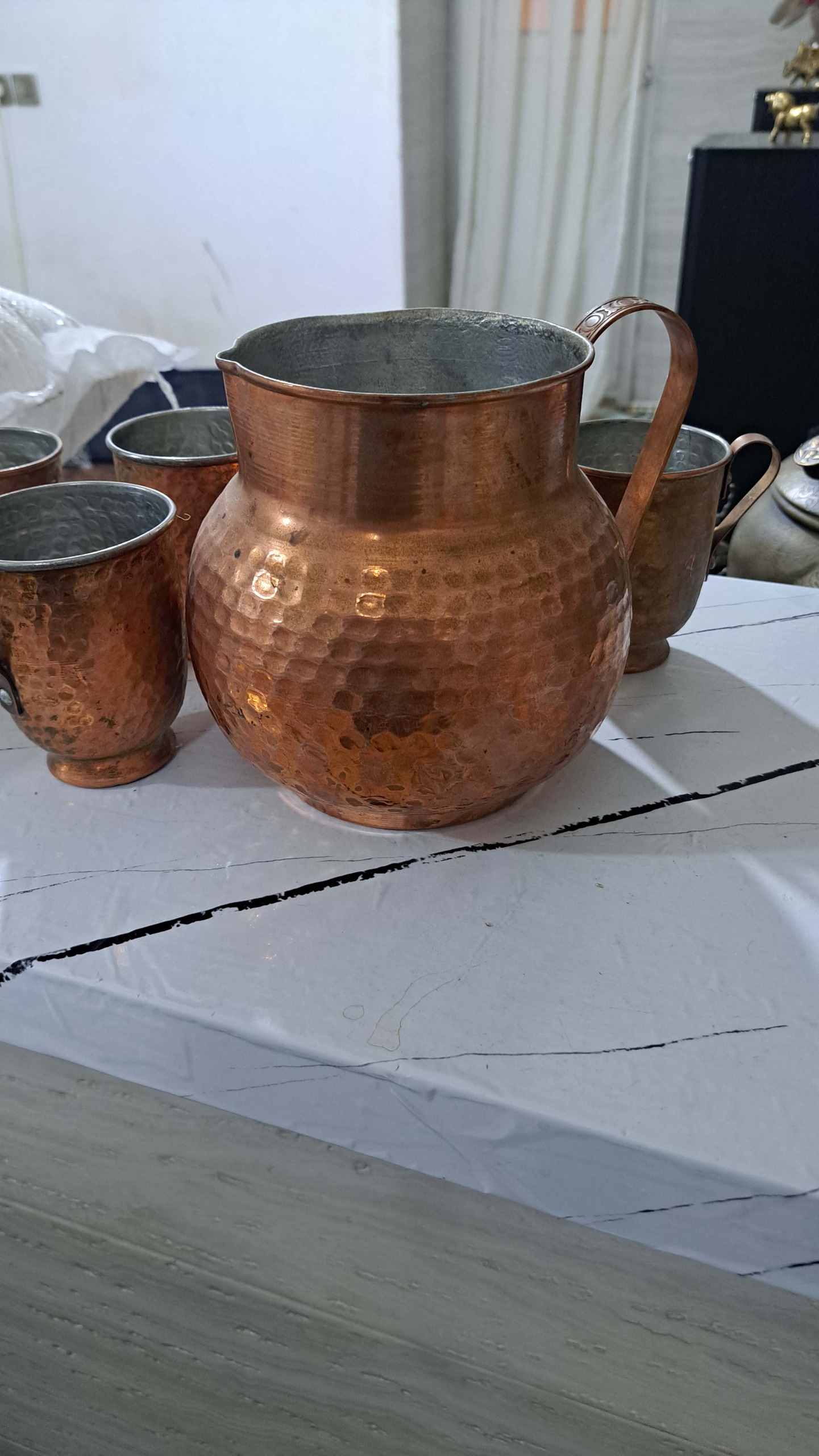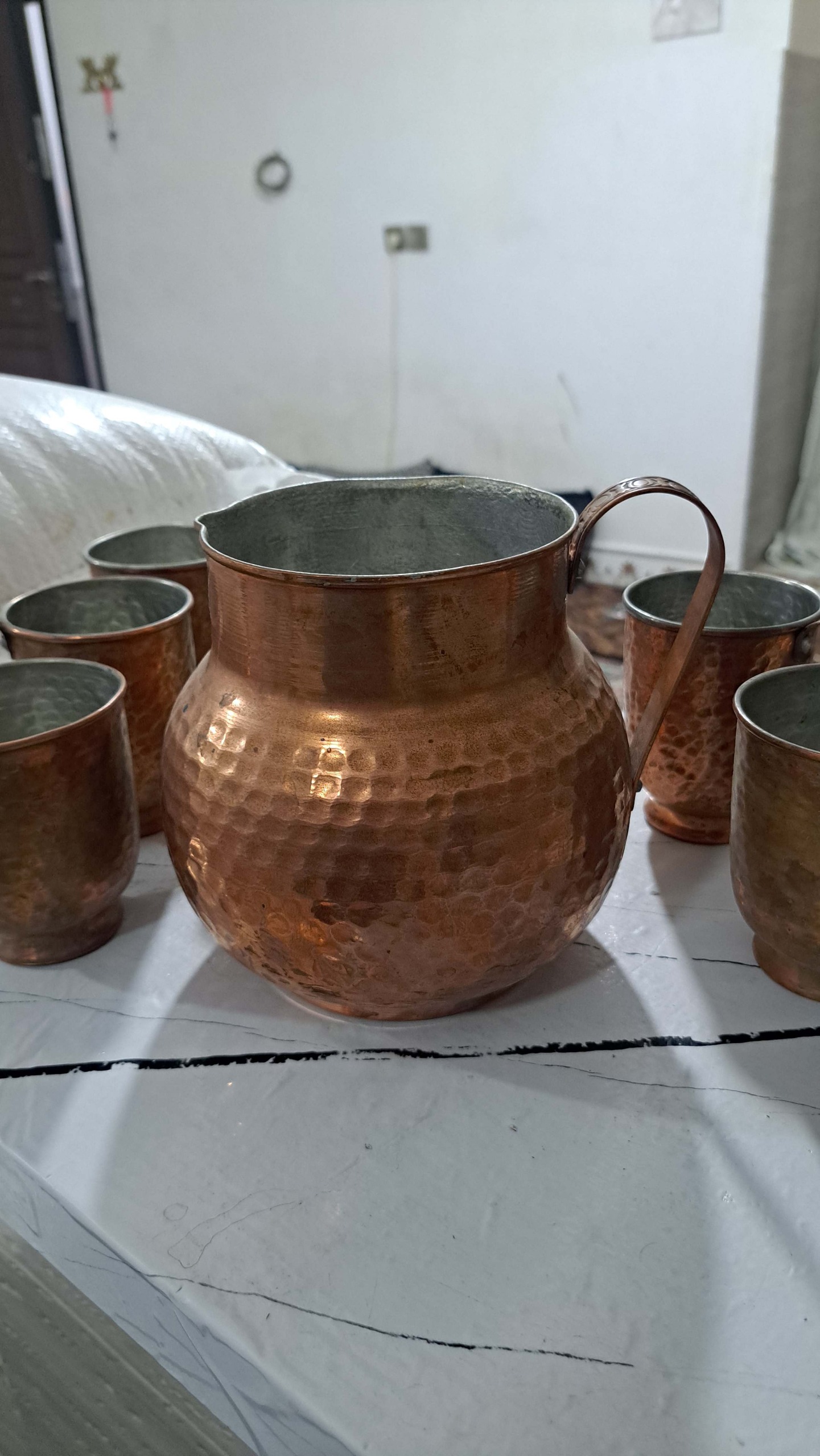 تنگـ و لیوان مسی ،با شش عدد لیوان ،زیبا و جوندار مناسب استفاده و کلکسیون