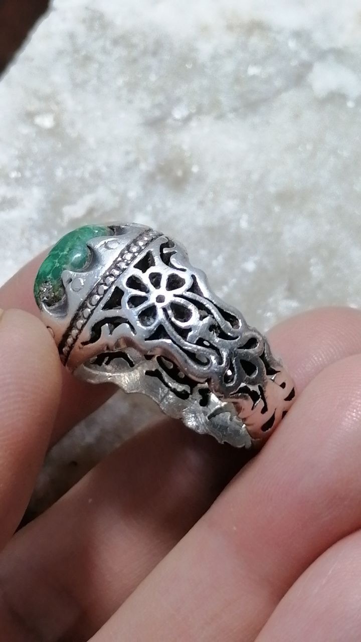 انگشتر نقره فیروزه اصل معدنی نیشابور دستساز آره کاری شده سایز64تا65 وزن بالای 15 گرم ابعادنگین 15در12 میل قیمت 3500