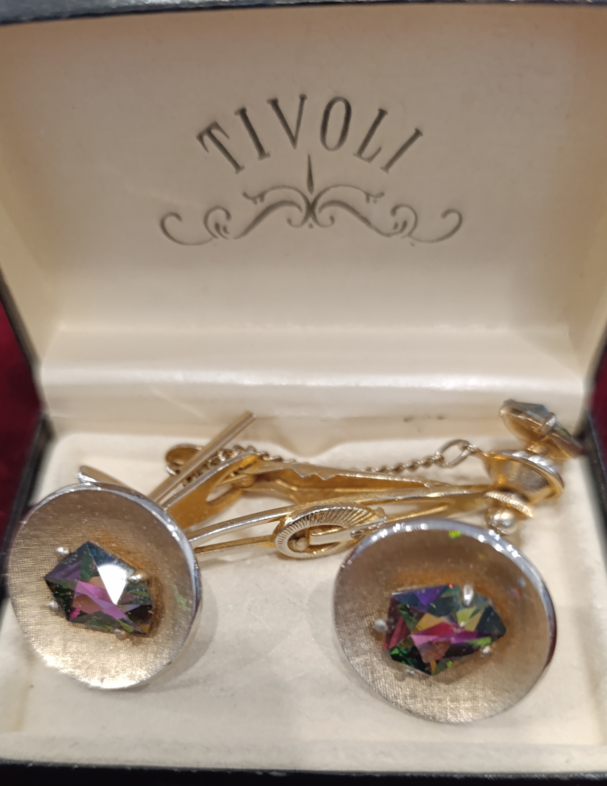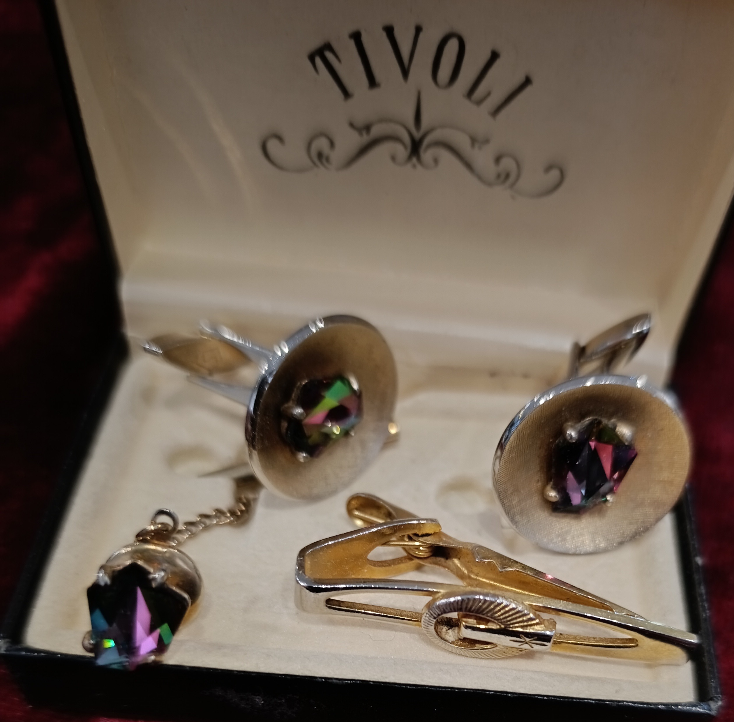 ست دکمه سردست با گیره کراوات ویچ سینه نگین دار