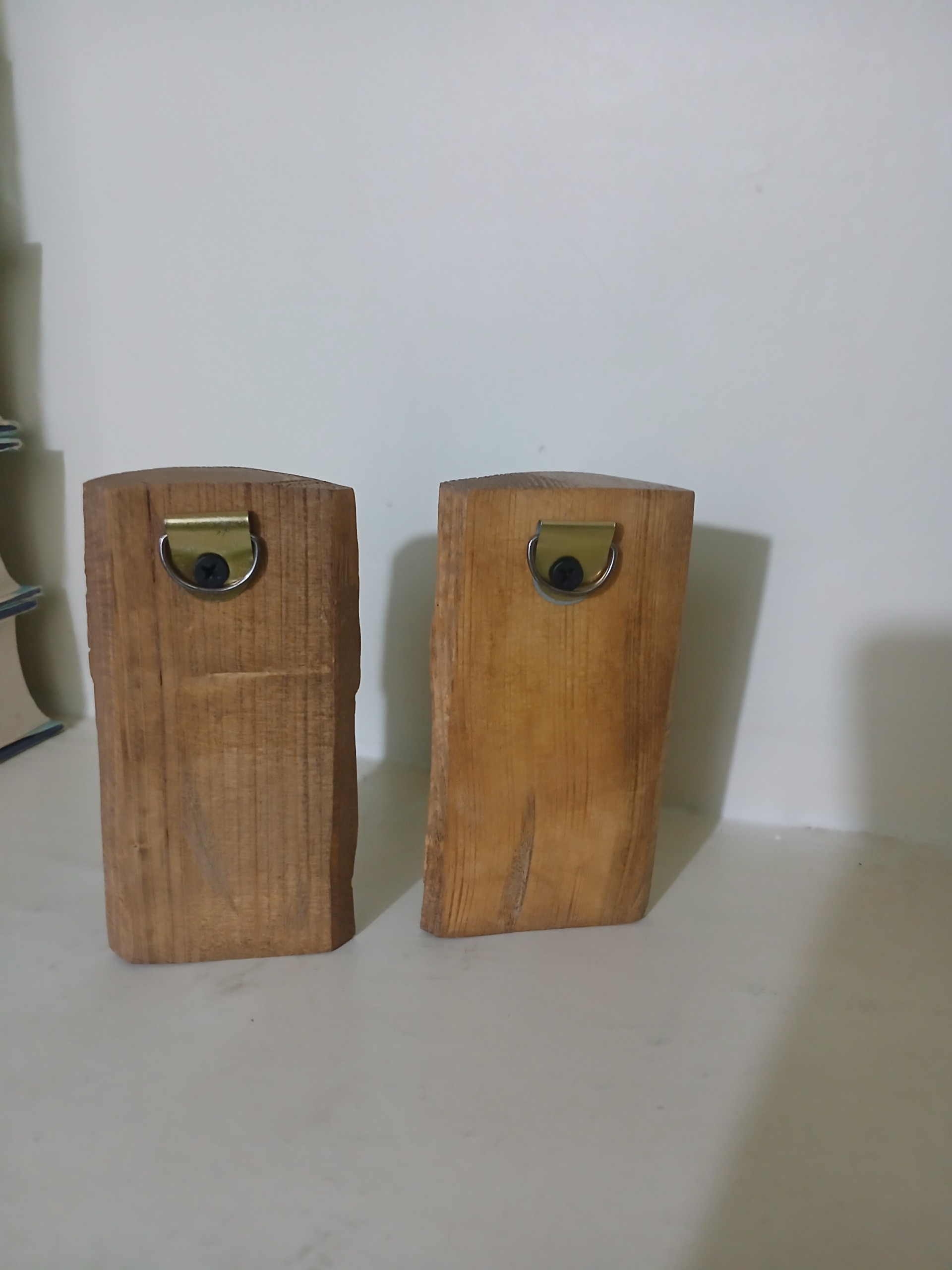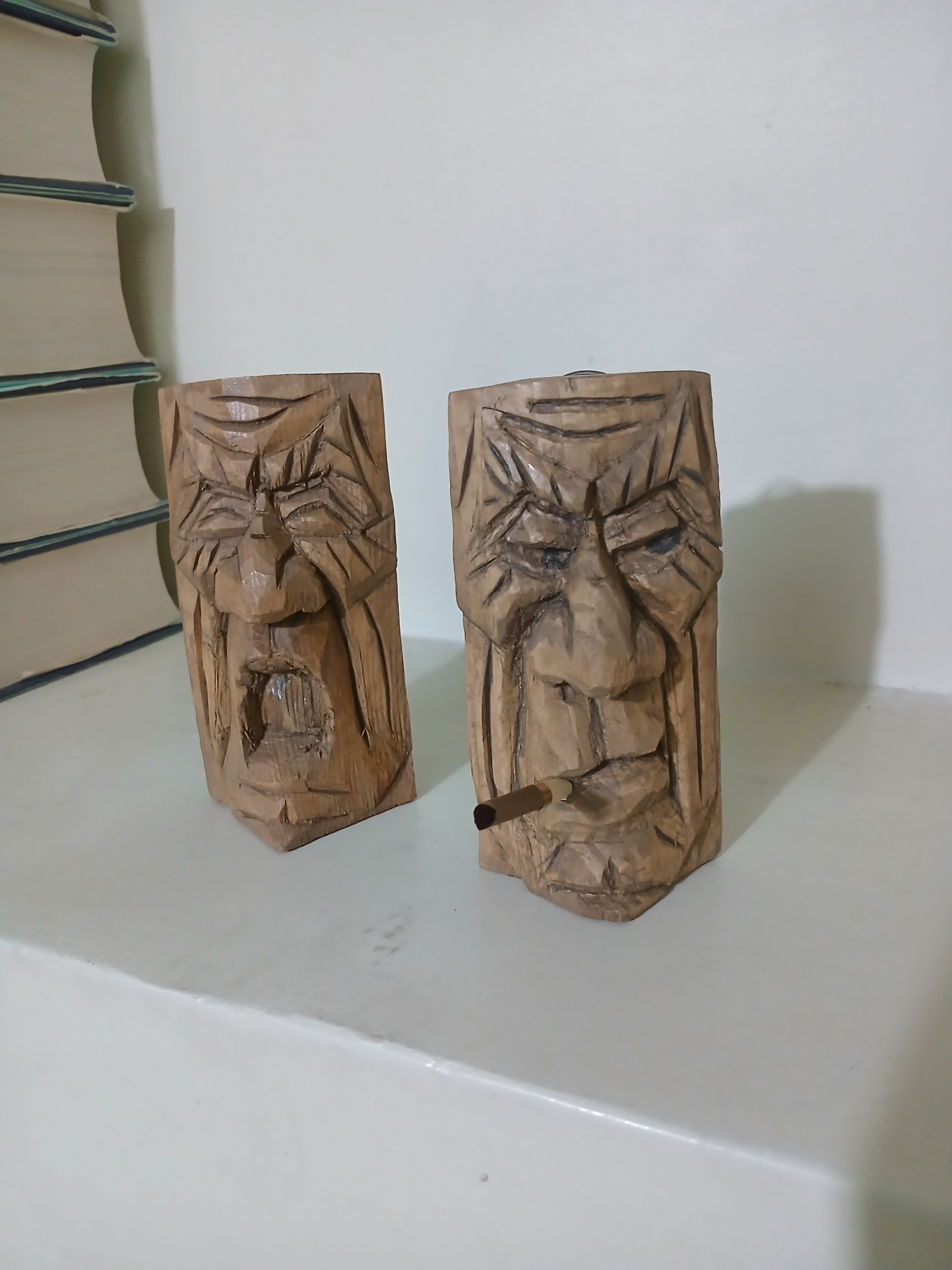 قیمت برای هر دو باهم میباشد. جنس چوب منبت کاری (کنده کاری) شده. یکی از مجسمه ها امکان استفاده به عنوان جا عودی داره که به جای عود سیگار نازک هم میتونید بذارید. همه به عنوان دکور دیواری هم رومیزی میتوانید استفاده کنید.