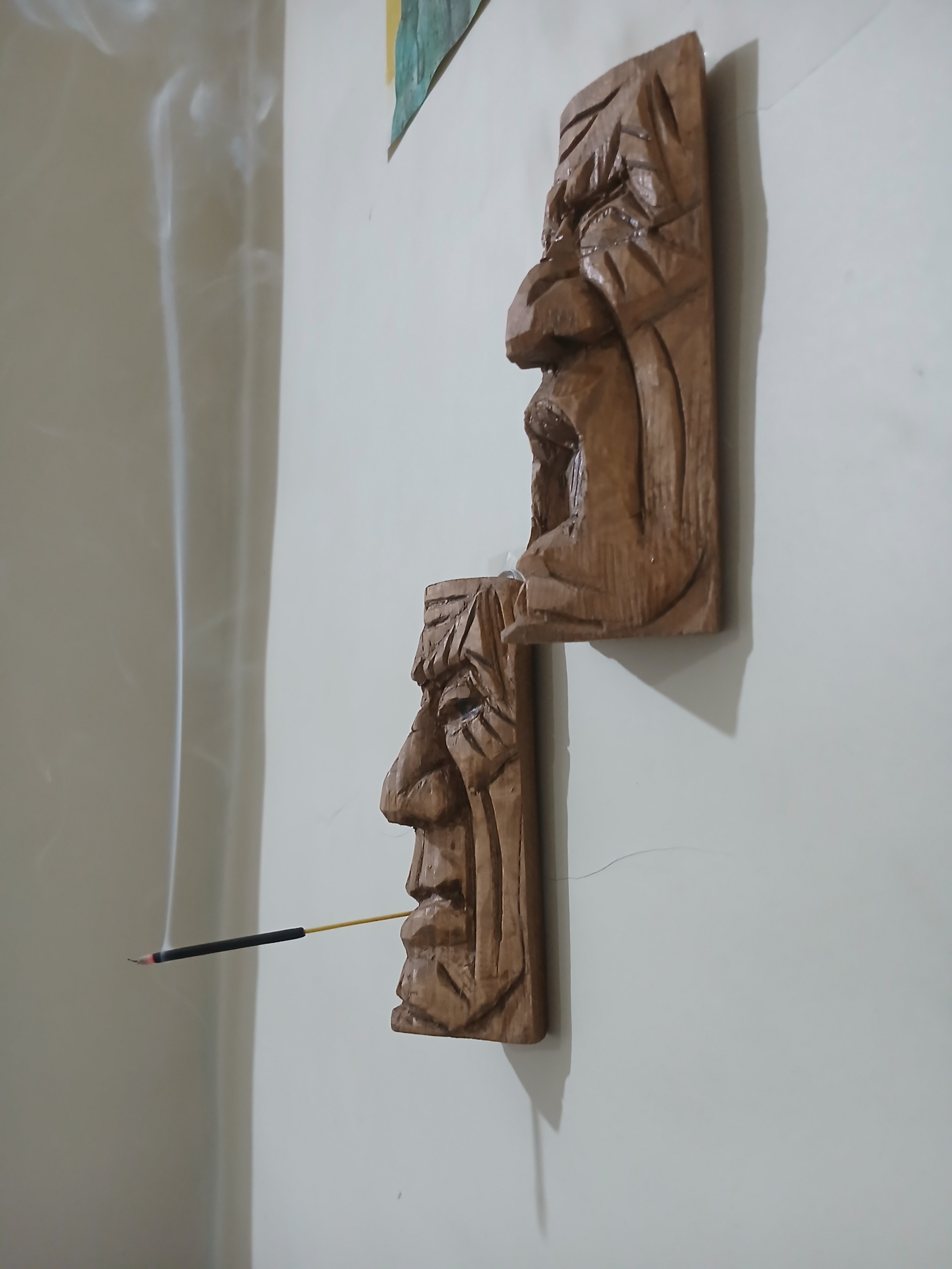 مجسمه چوبی چهره دیواری جا عودی چوبی رومیزی