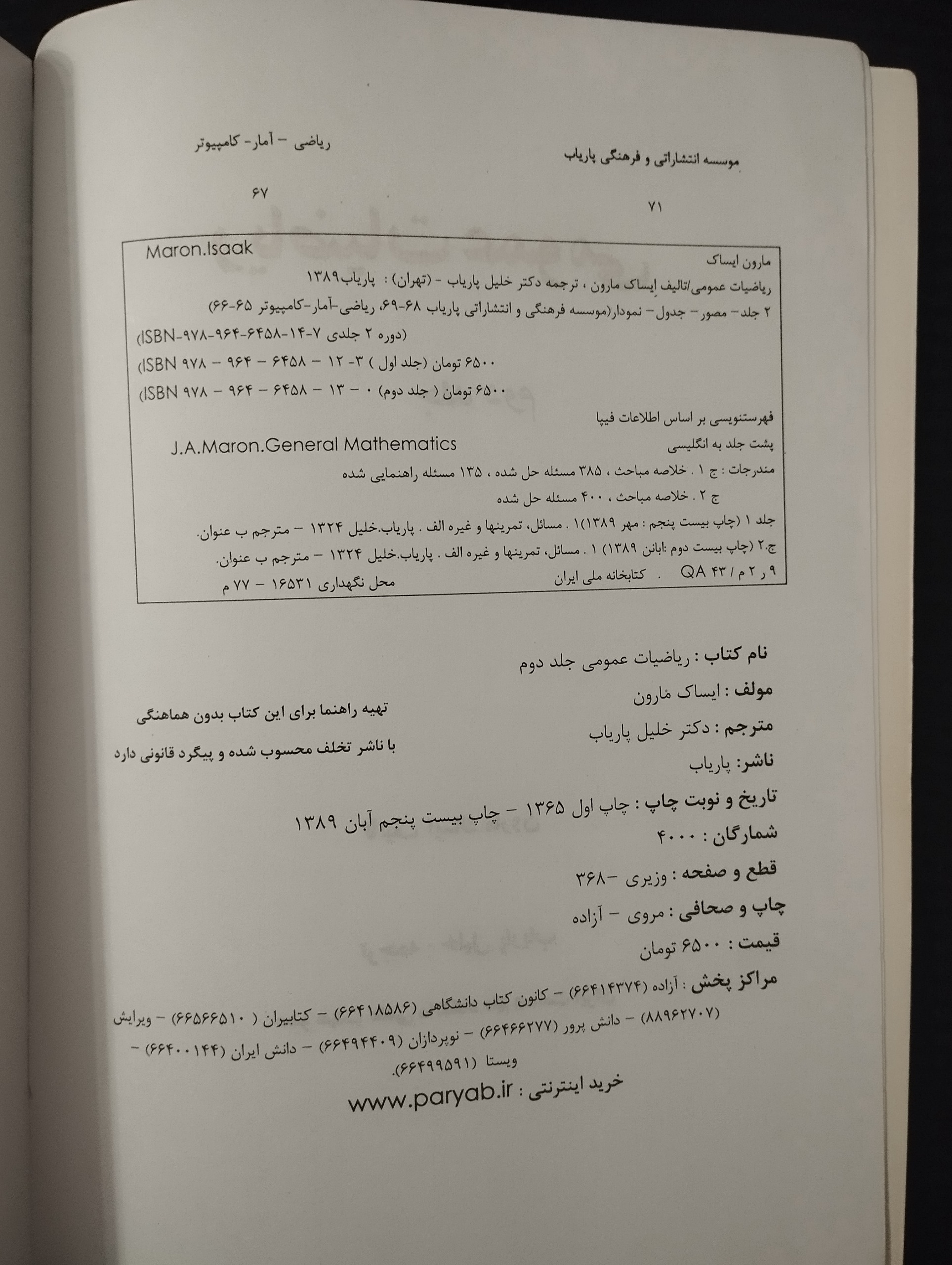 ریاضیات عمومی جلد دوم ــ (ایساک مارون)