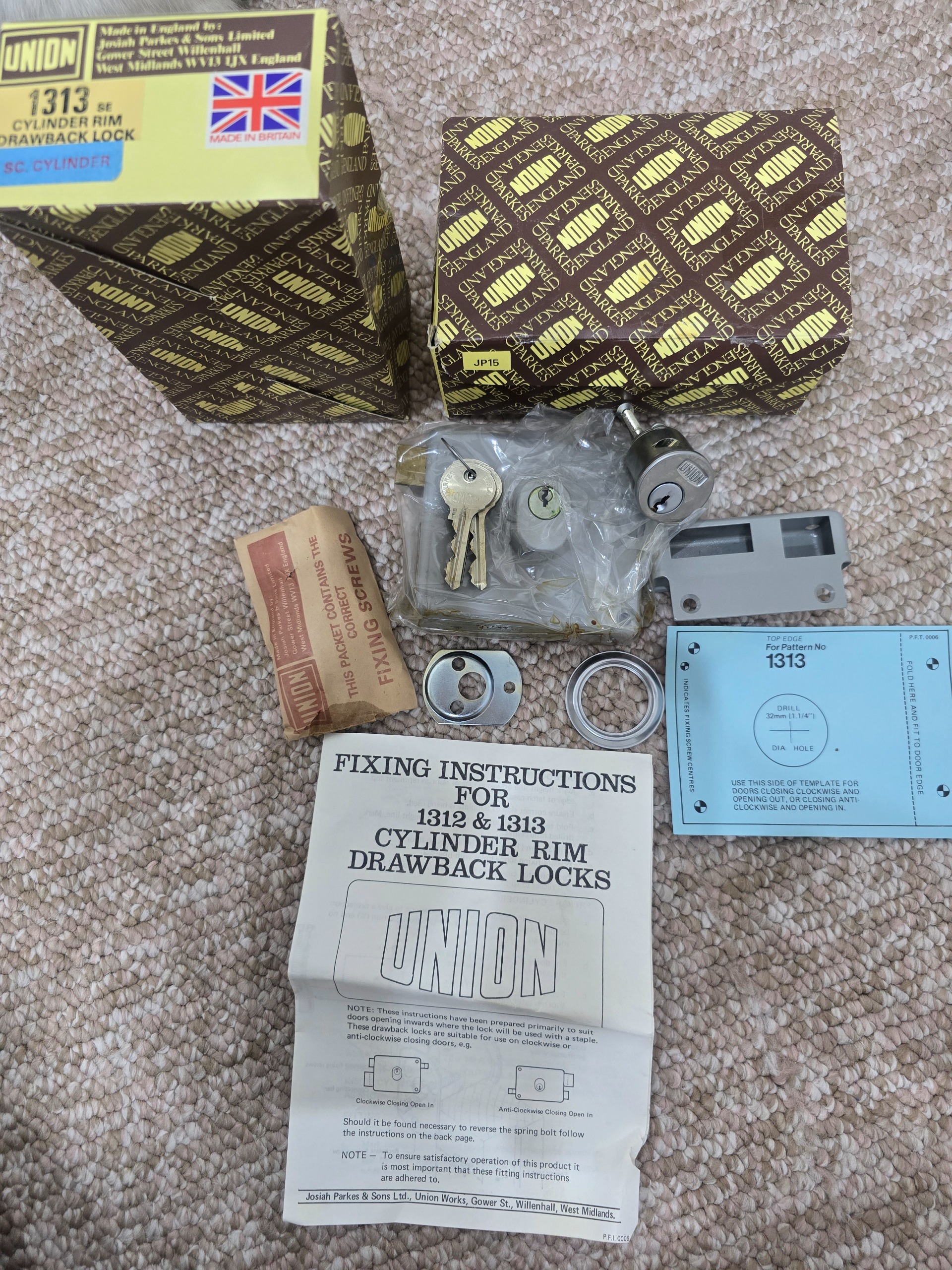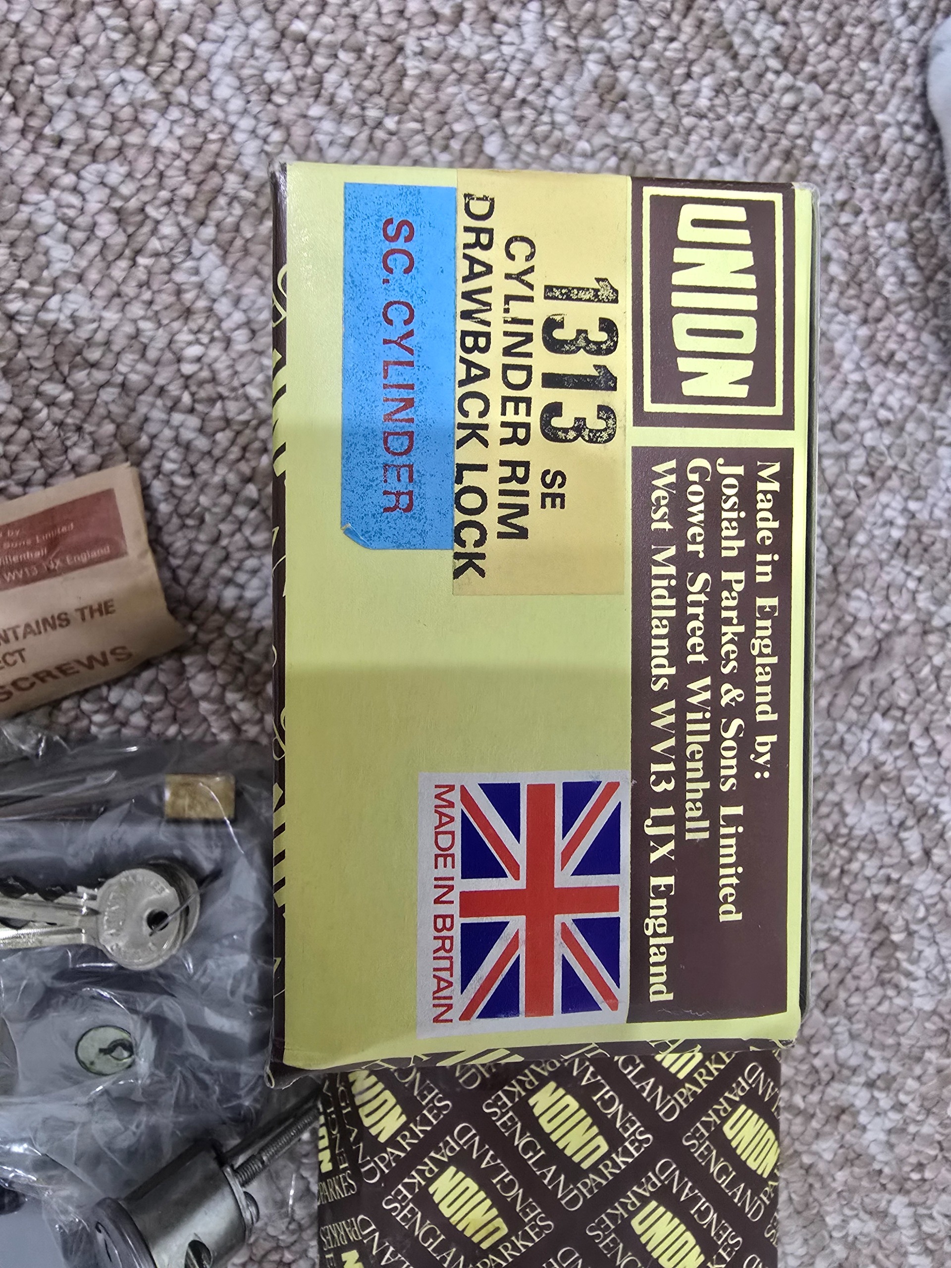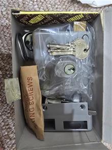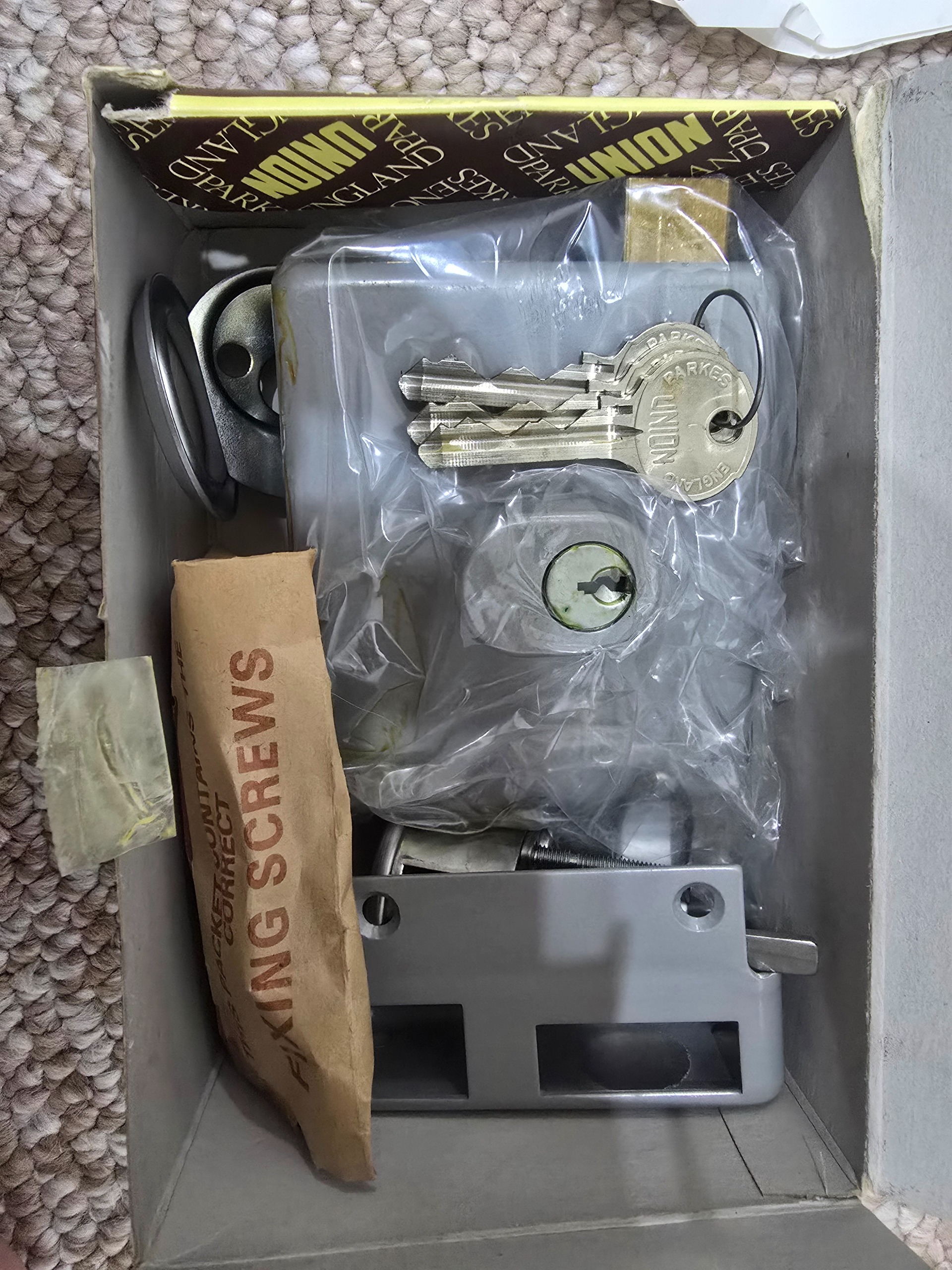 قفل قدیمی انگلیسی برند union مربوط به دهه 1970 میلادی کاملا نو و آکبند حتی پیچ های مربوط به نصب داخل جعبه موجوده