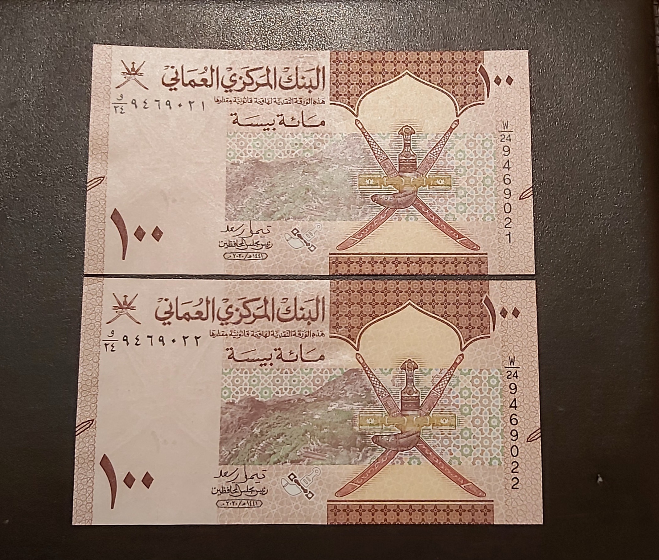 جفت اسکناس 100 پیسه عمان شماره اسکناس پشت سر هم