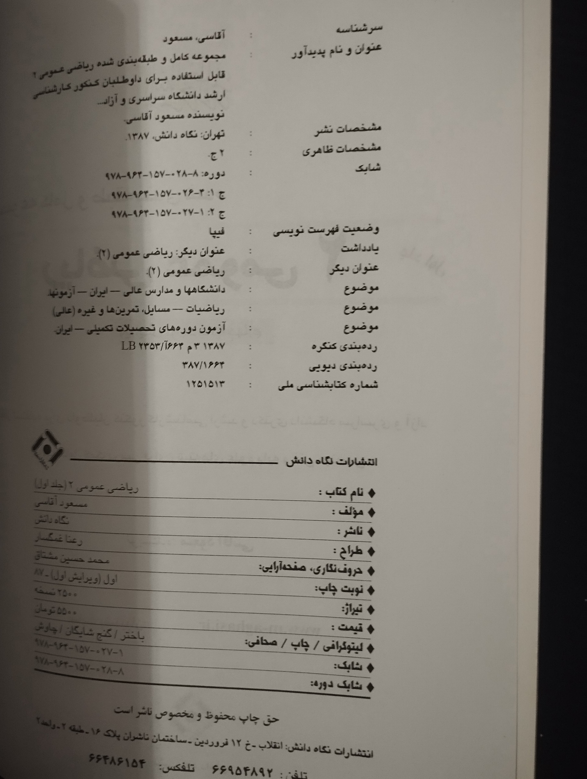 ریاضی عمومی 2 جلد اول ــ ( مسعود آقاسی)