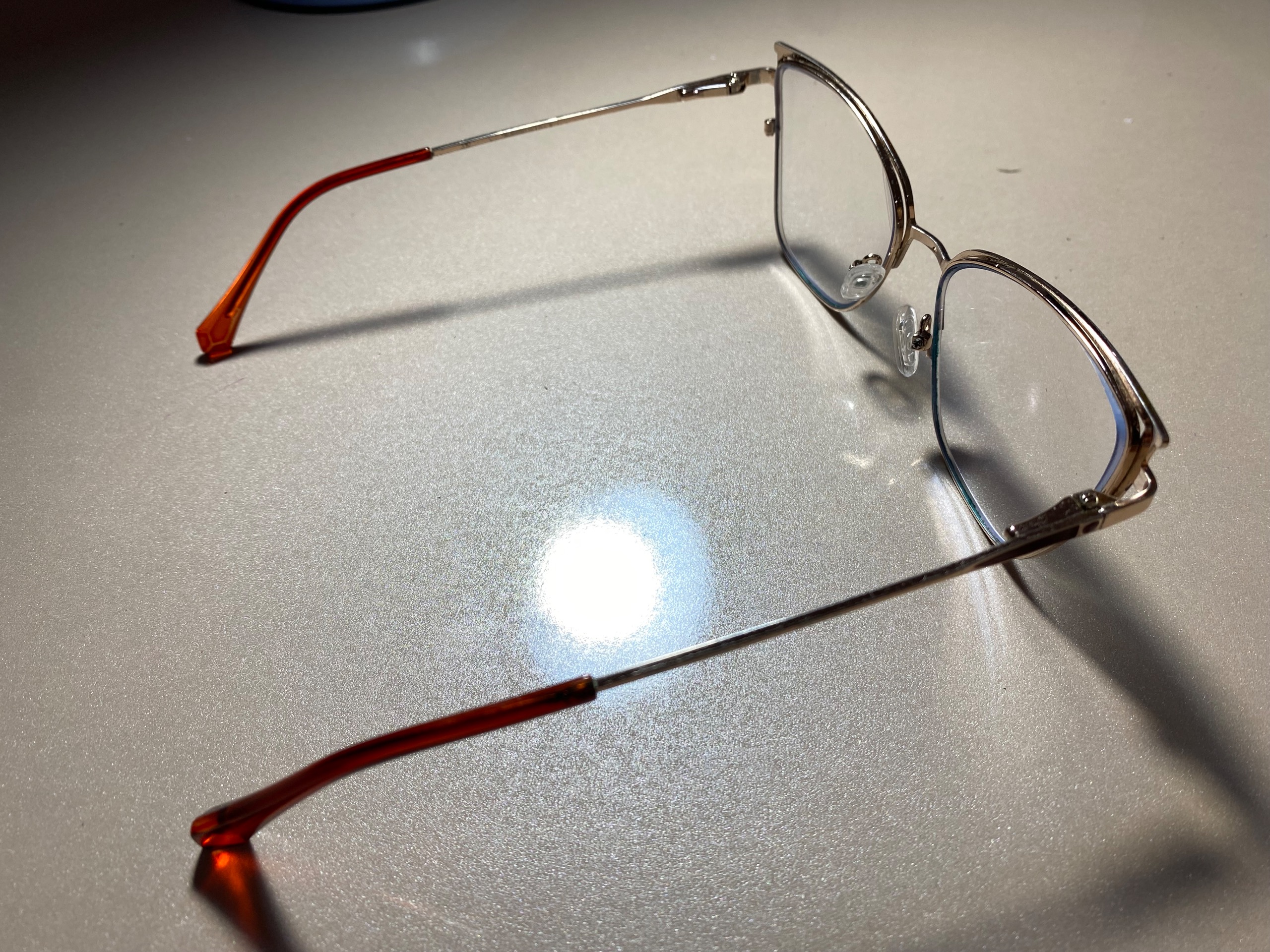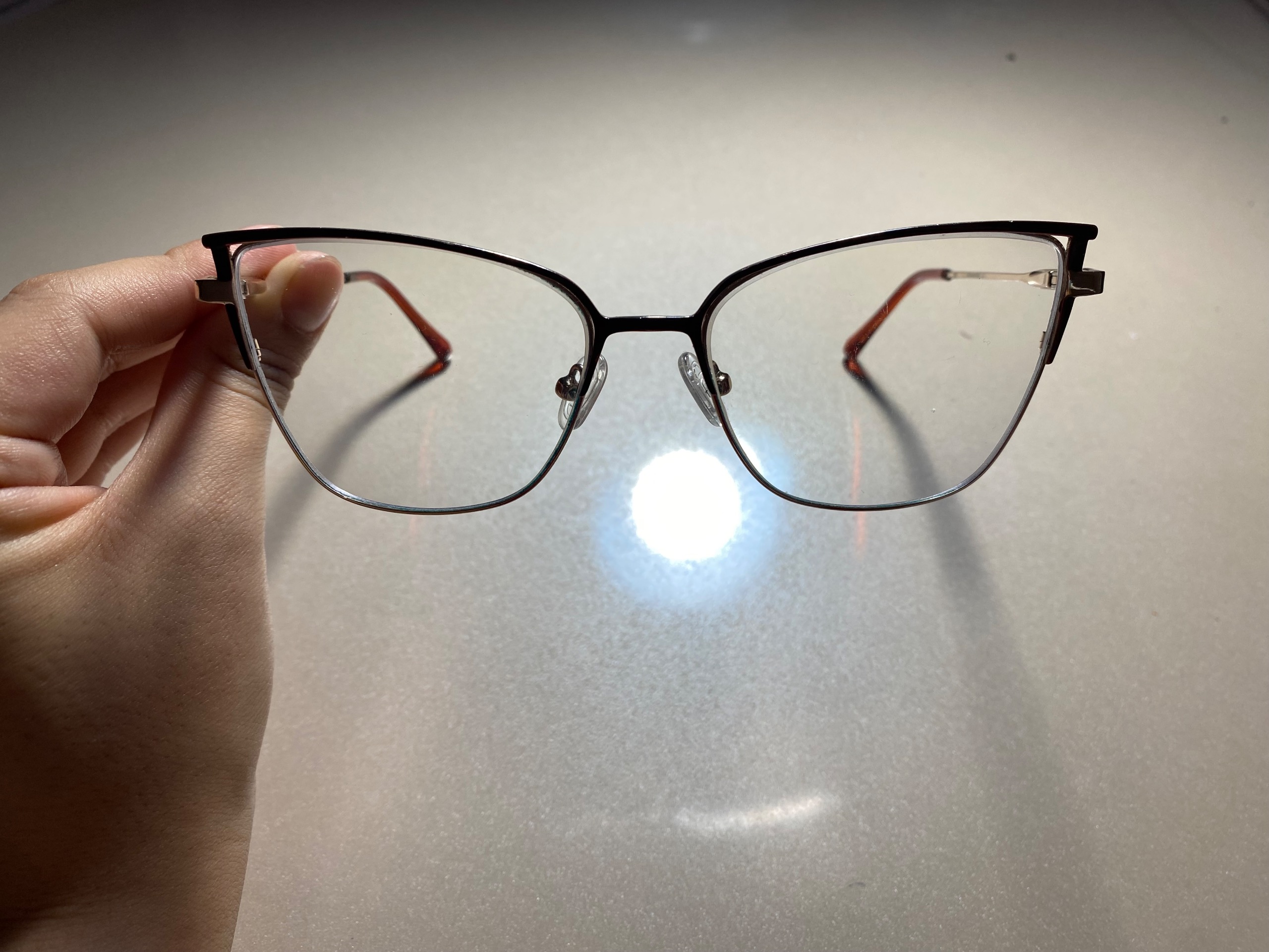 عینک طبی زنانه گربه ایی فلزی خطو خش جزئی دارد