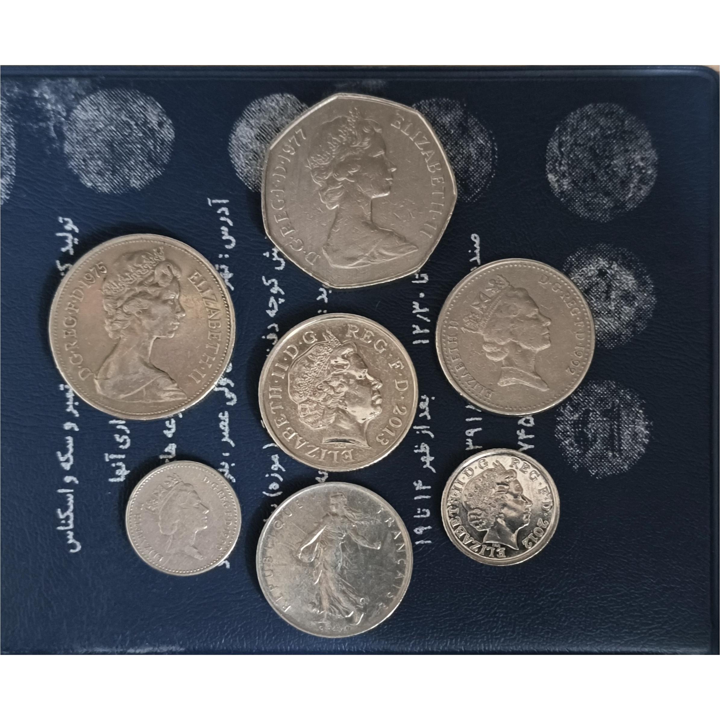 تعدادی سکه انگلستان و یک فرانک فرانسه