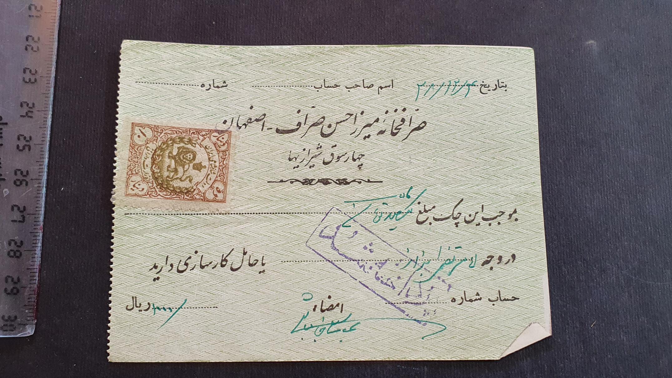 چک صرافخانه میرزا حسن صراف- اصفهان 1328