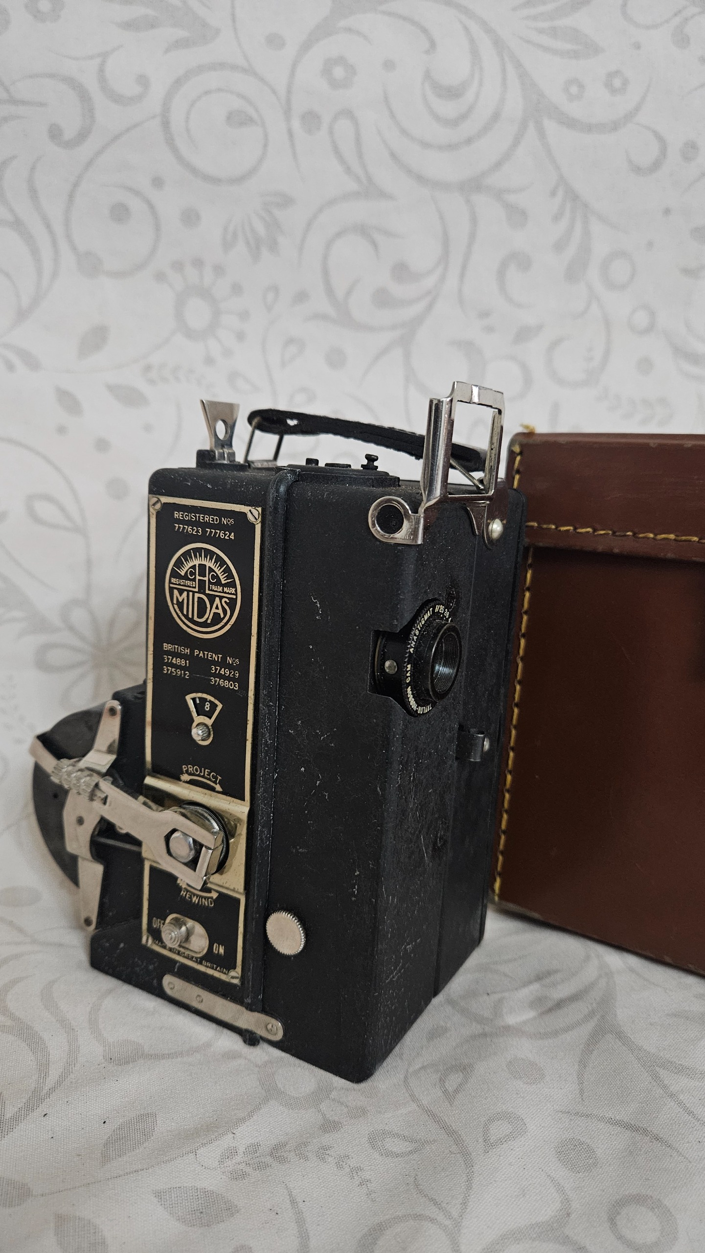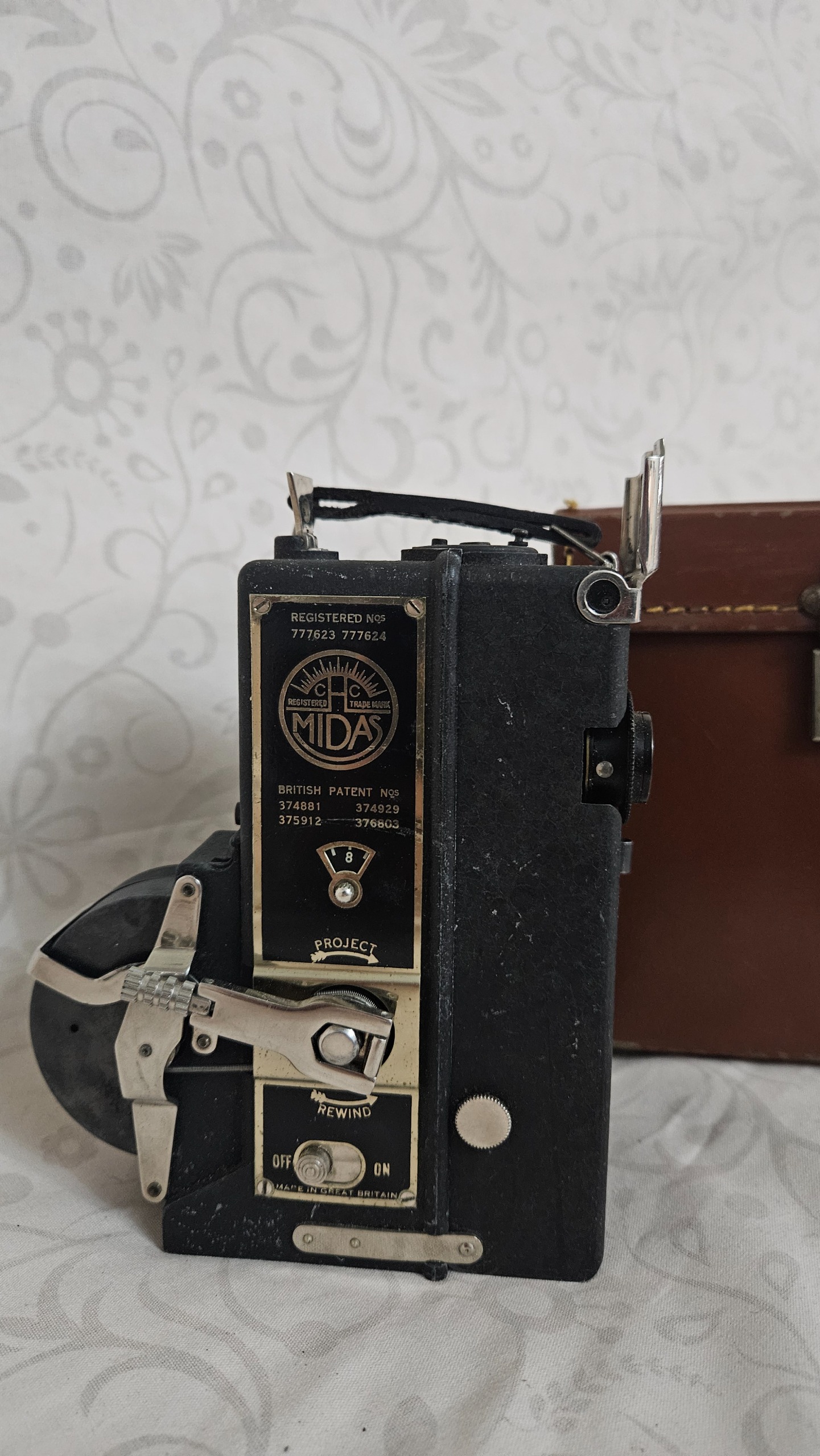 دوربین  فیلمبرداری و پروژکتو قدیمی از کمپانی میداس . مناسب برای فیلم 9.5 میلیمتری بهمراه کیف اورجینال. بسیار تمیز و اماده به کار