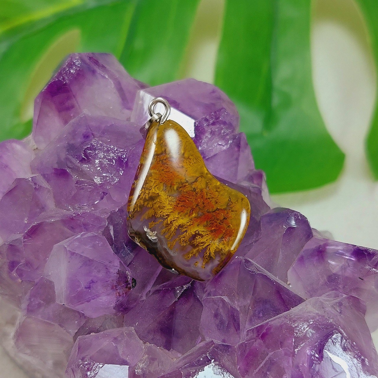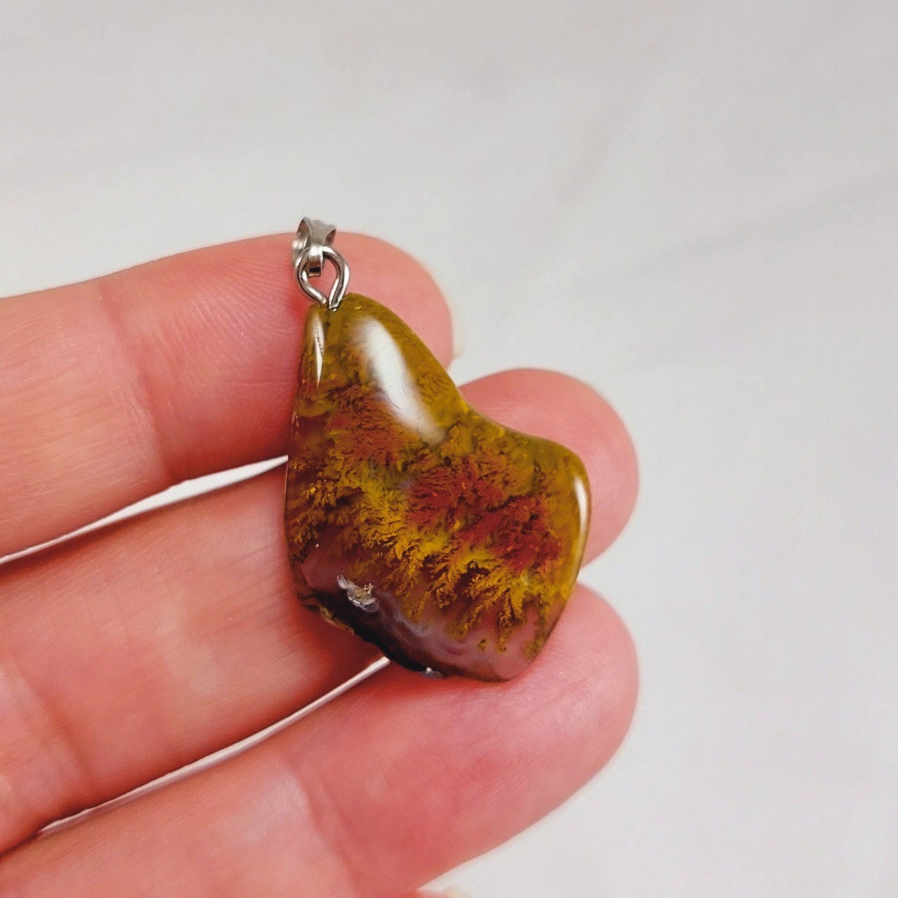 اسلب پولیش خورده عقیق شجر پاییزی بسیار چشمنواز؛ متعلق به خراسان جنوبی و به همراه زنجیر