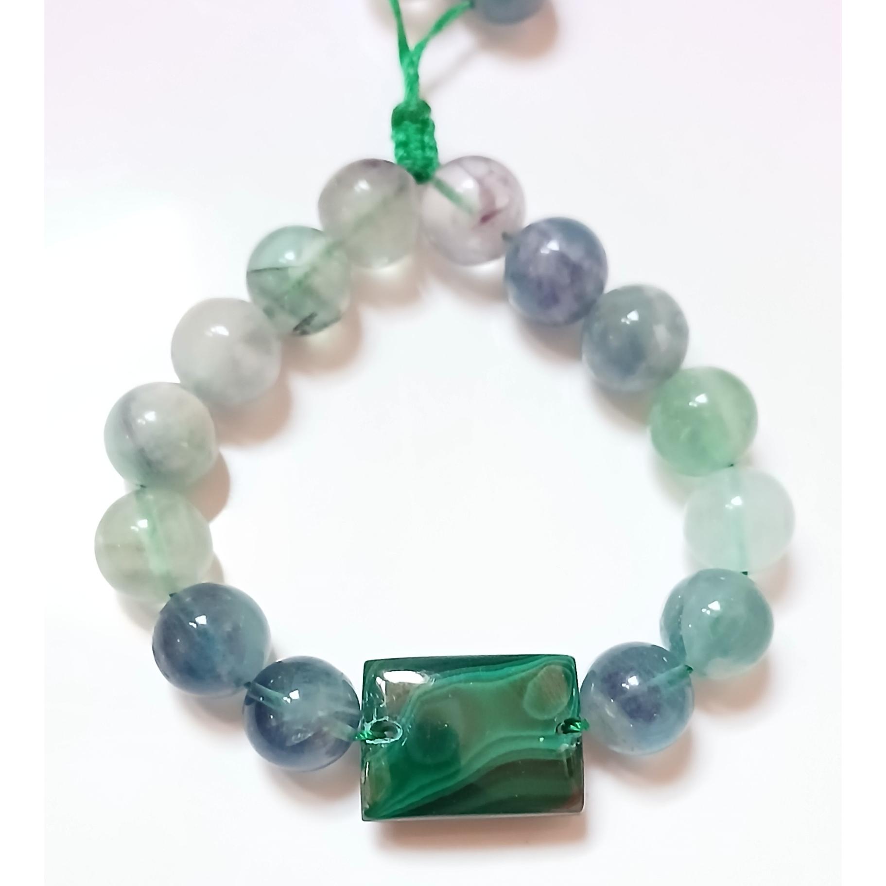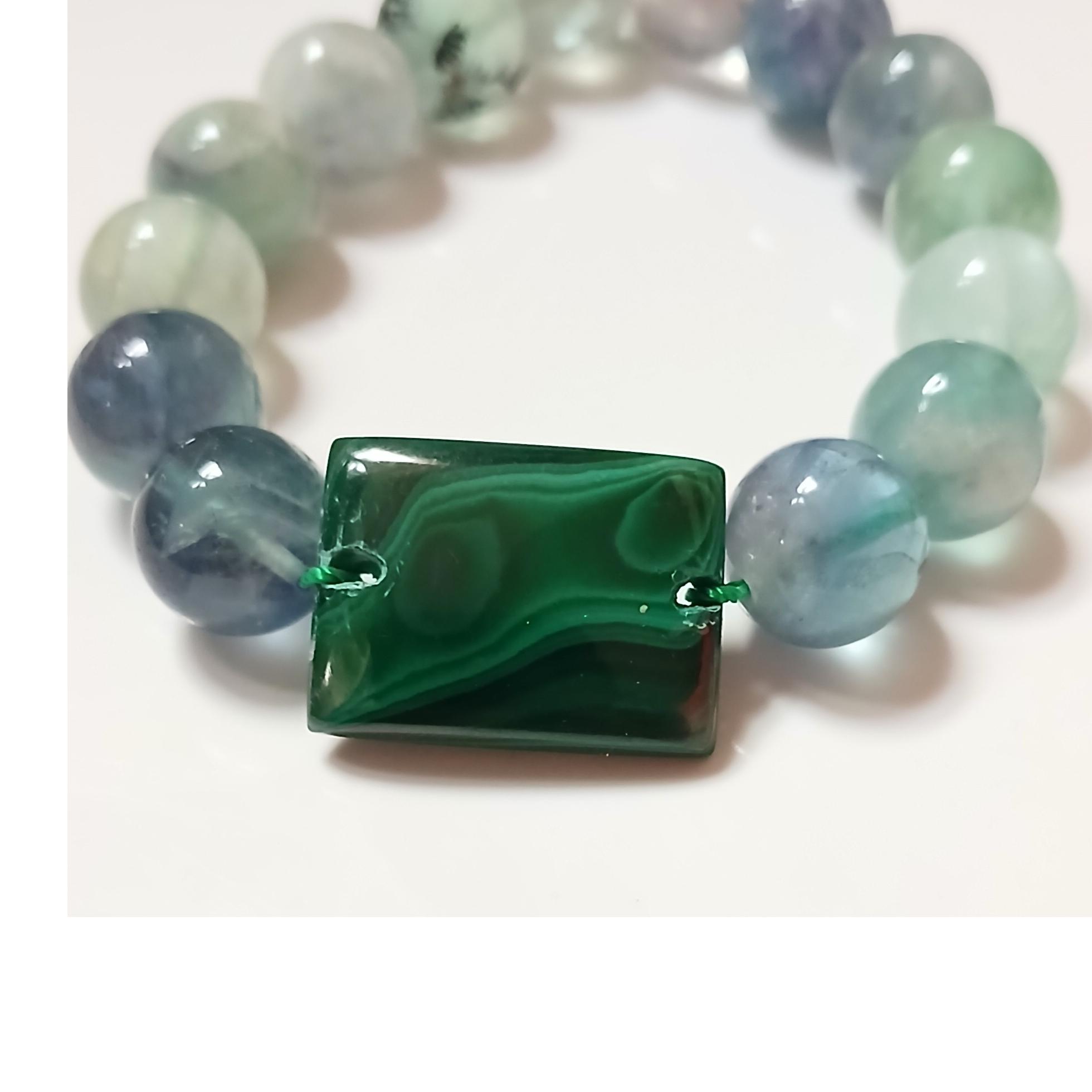 پلاک از جنس مالاکیت و مهره ها از جنس فلوریت