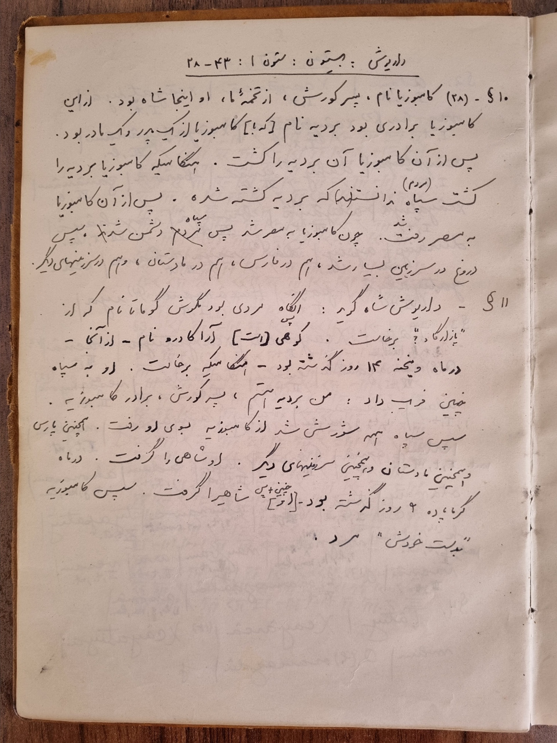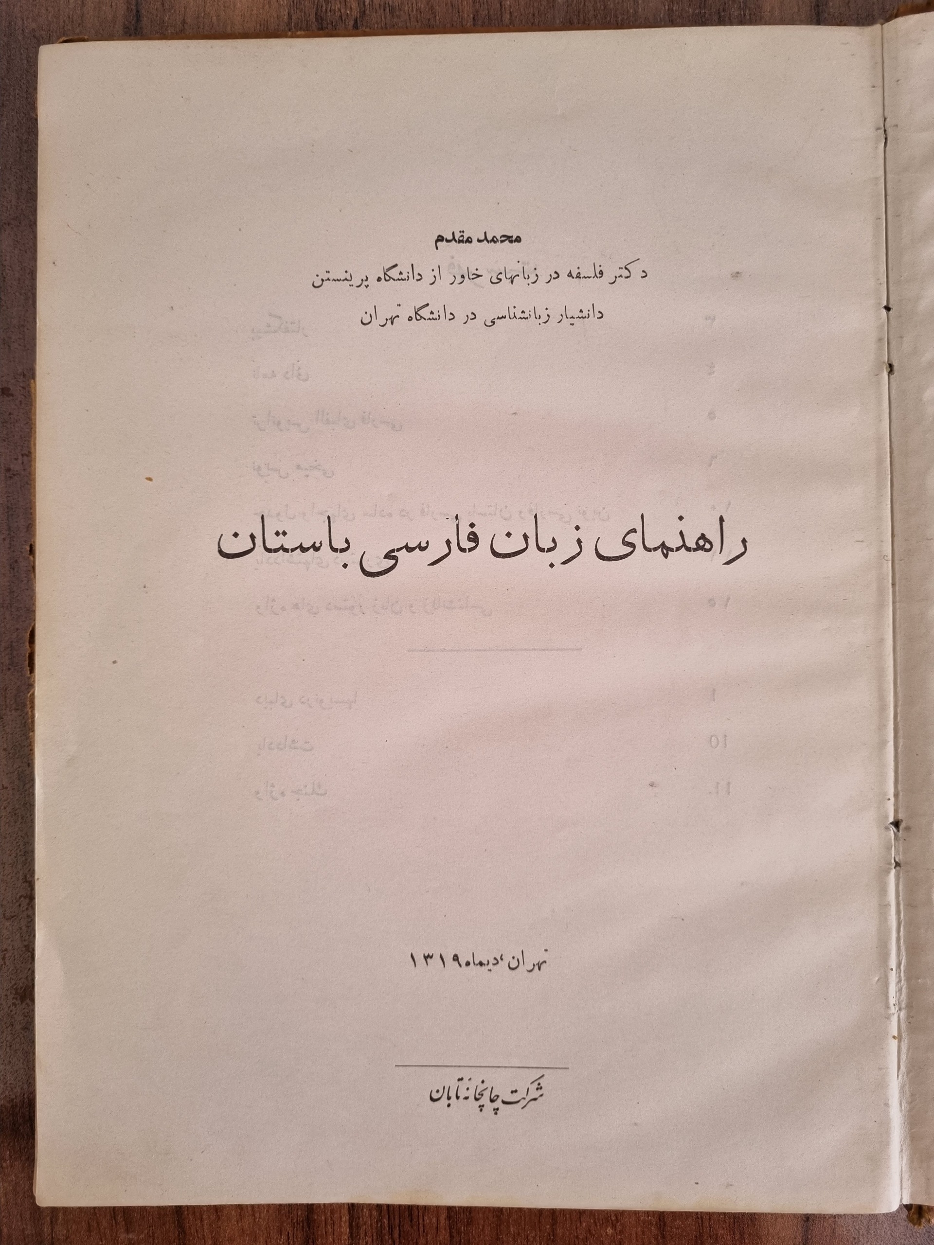 این کتاب راهنمای زبان فارسی باستان قبل از چاپ میباشد که با دستخط خود نویسنده، یعنی محمد مقدم است.