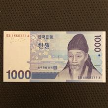 اسکناس تک بانکی 1000 وون کره جنوبی شماره متفاوت