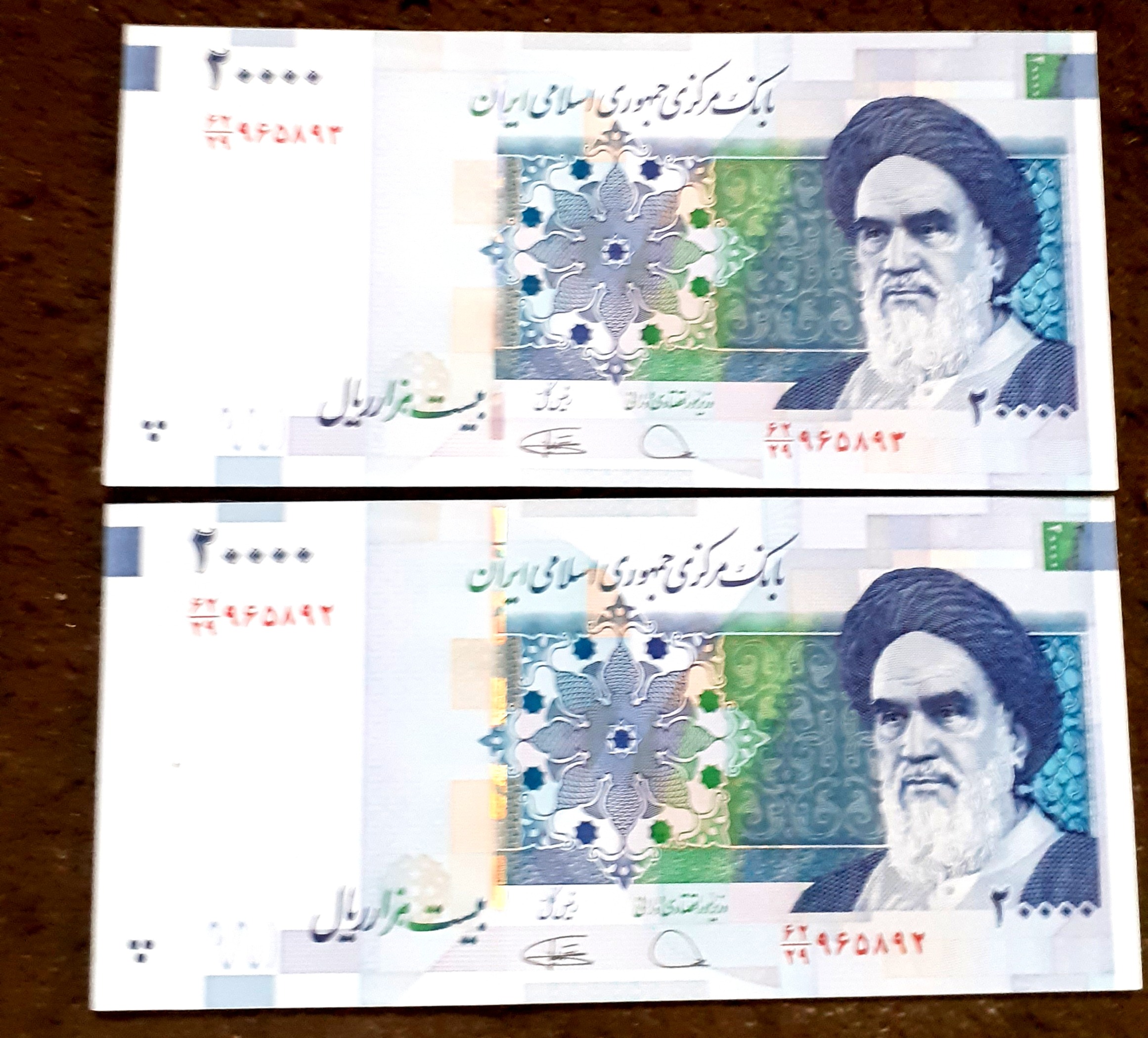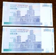جفت اسکناس زیبای 20000ریالی شماره زیبا
