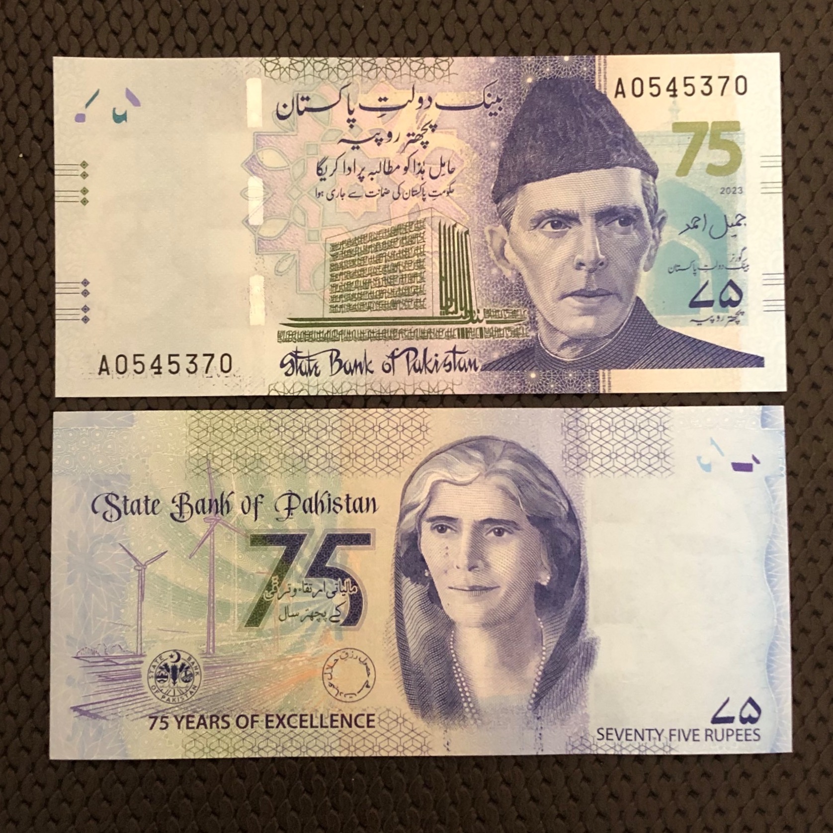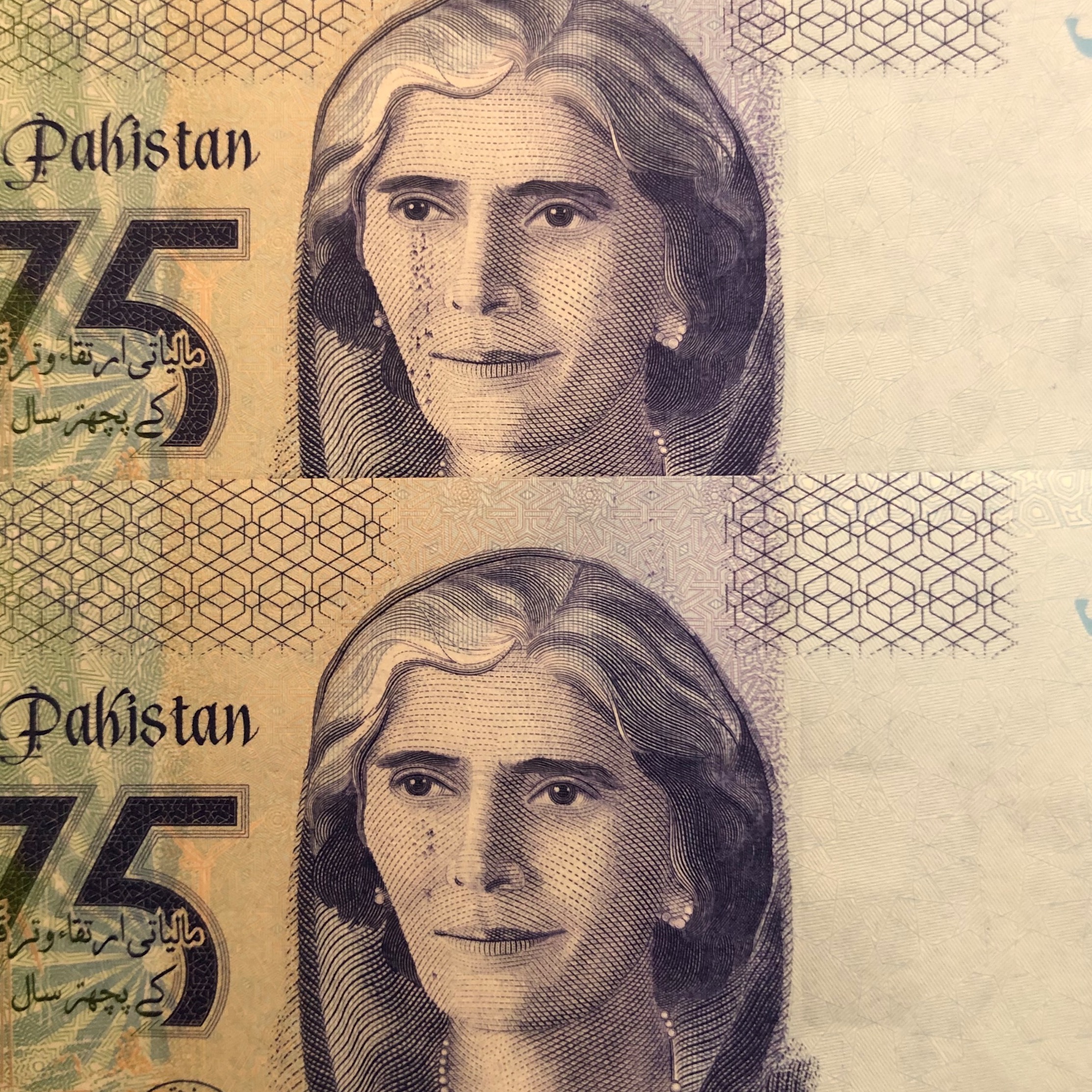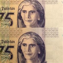 اسکناس جفت ارور 75 روپیه پاکستان ارور پخش رنگ