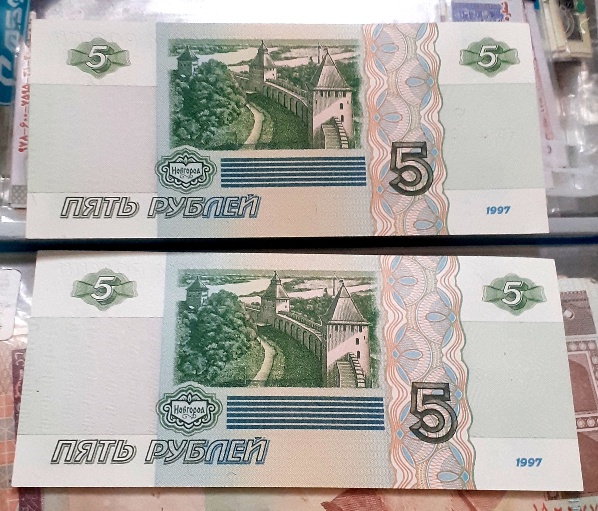 جفت اسکناس زیبای 5روبل روسیه 1997 کمیاب