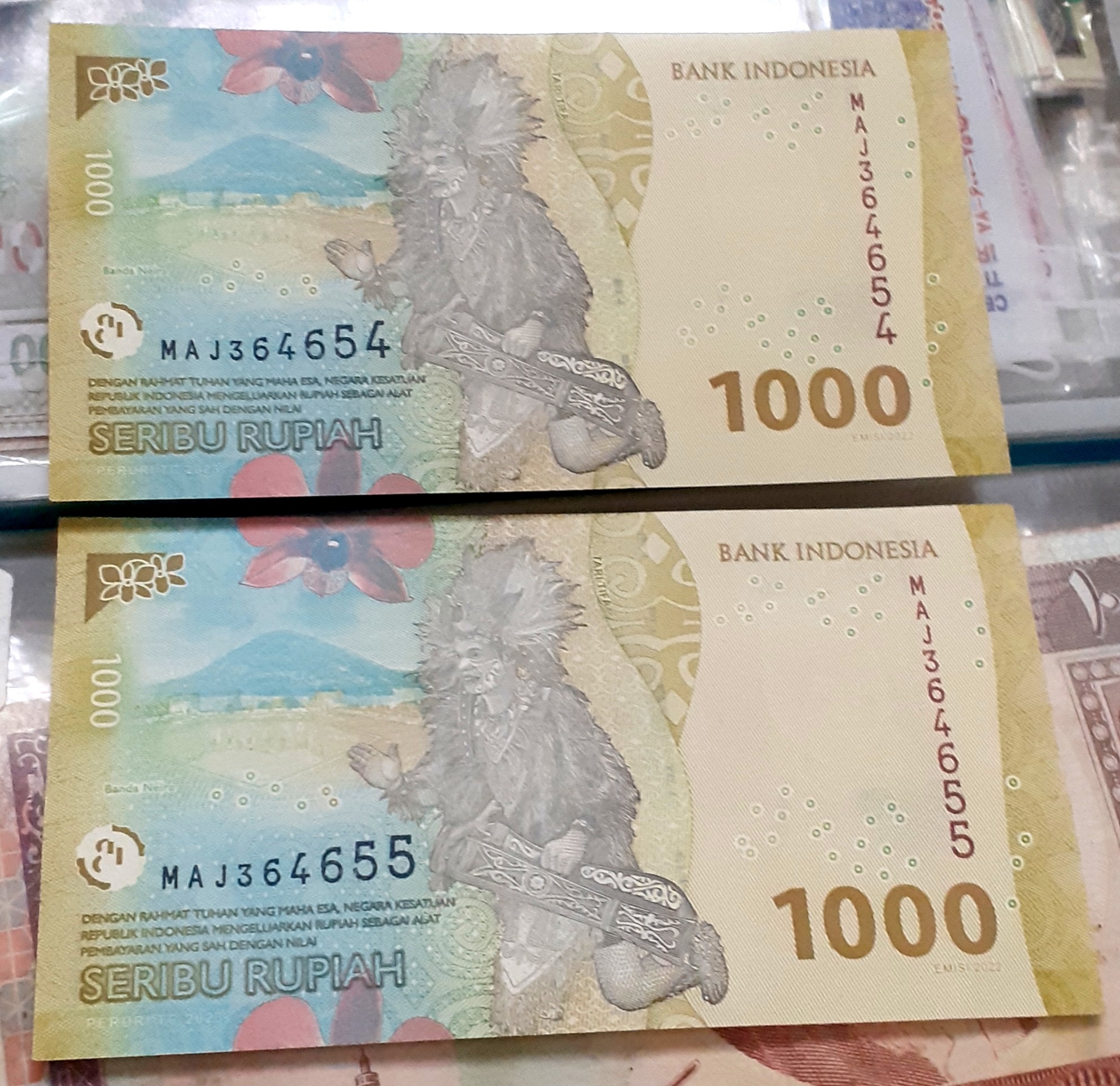 جفت اسکناس زیبای 1000روپیه اندونزی کمیاب 2022