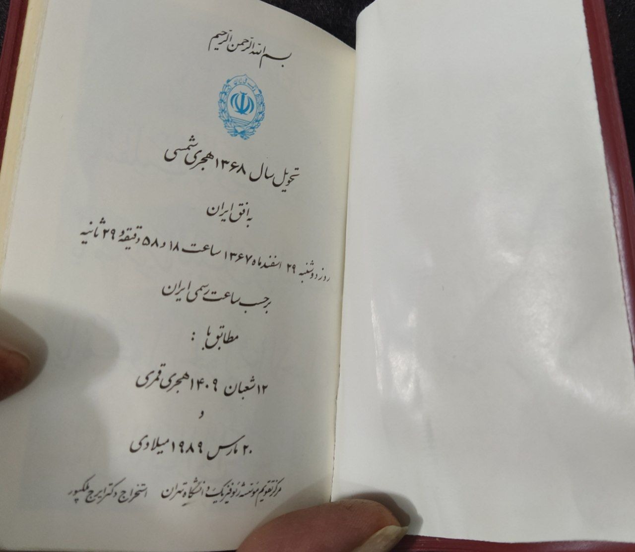 تقویم جیبی جلدمشمایی بانک ملی سال68