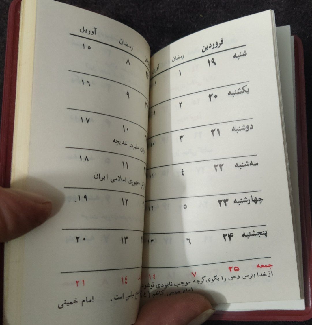تقویم جیبی. جلدمشمایی