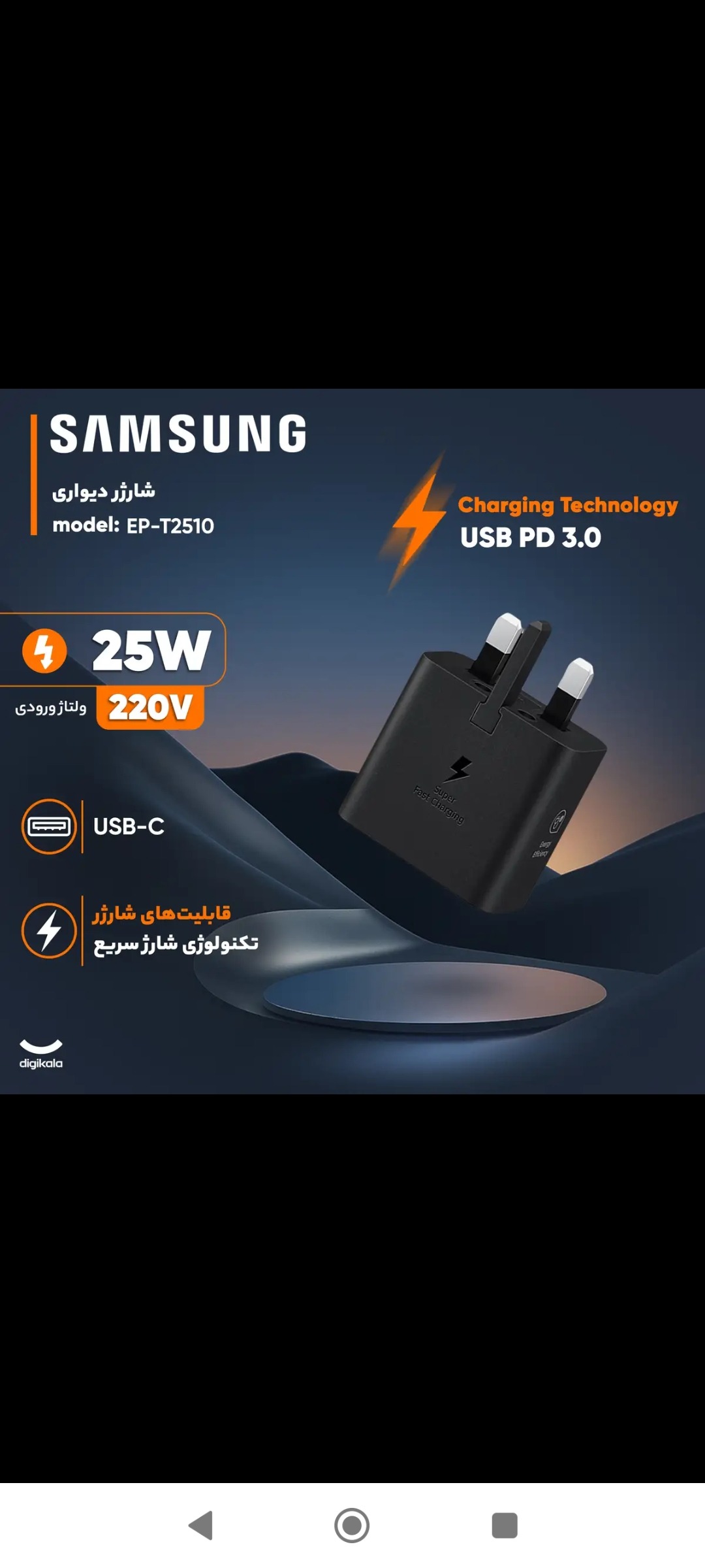 مزایده تکرار نشدنی شارژر 25 وات سامسونگ