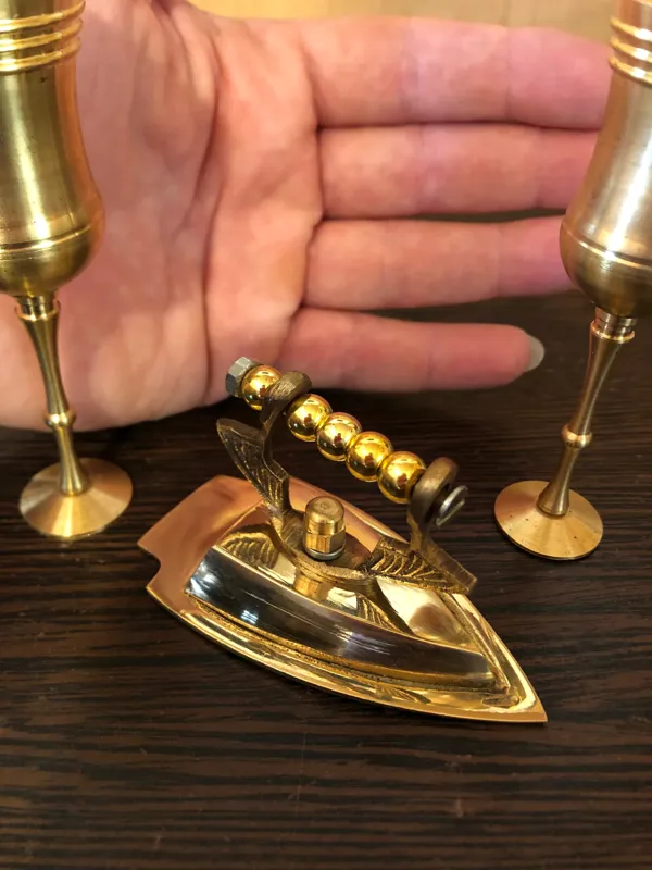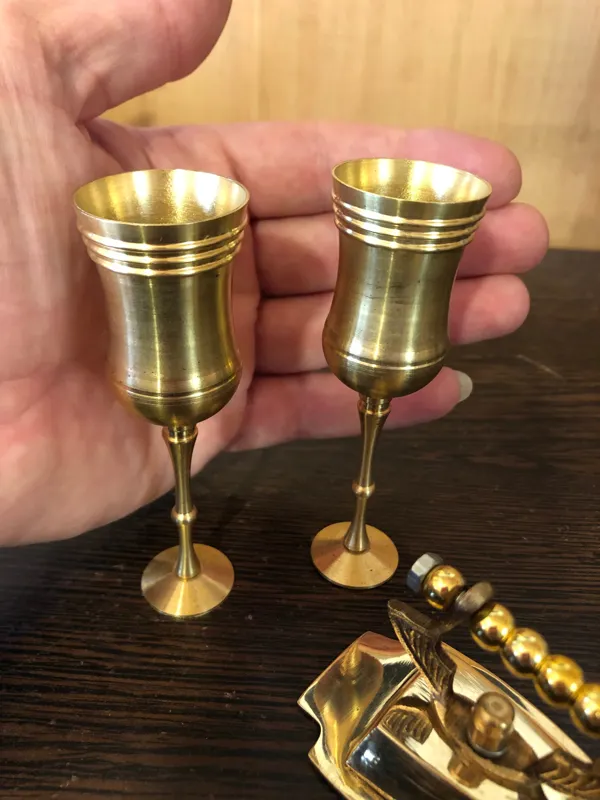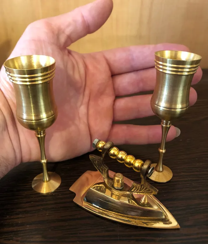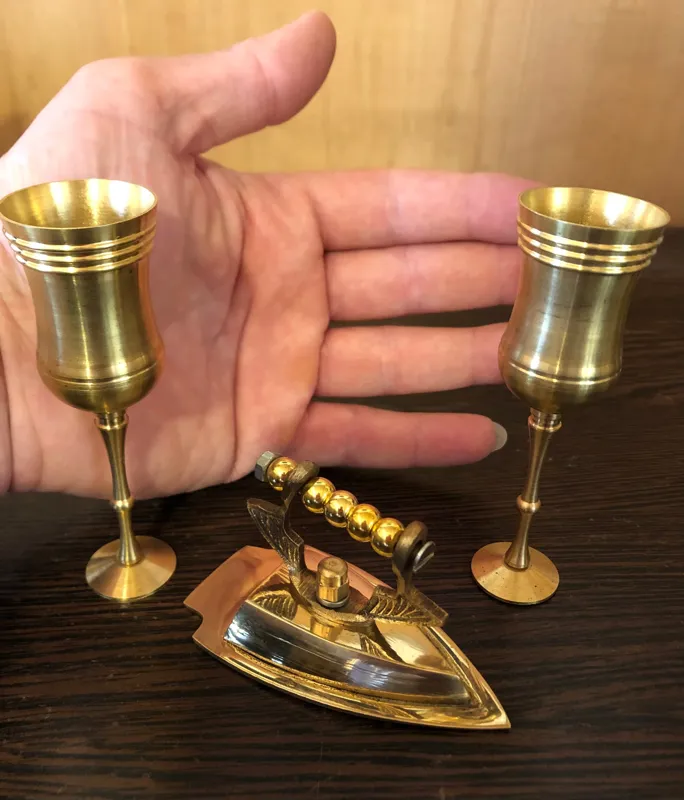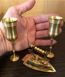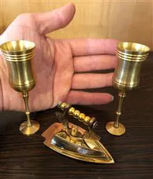 2 عدد جام برنجی 9 سانتی و اتو برنجی 7 سانتی.