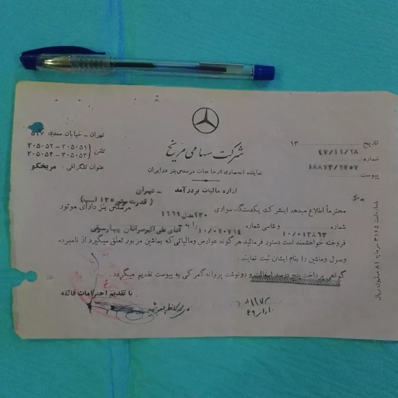 سر برگ تمبر دار خرید بنز با بیمه و مالیات