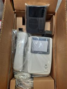 یک عدد گوشی سیاه سفید پاناسونیک به همراه پنل که ارتباط گوشی با پنل فقط با دو سیم انجام میشود (صدا - تصویر - زنگ)