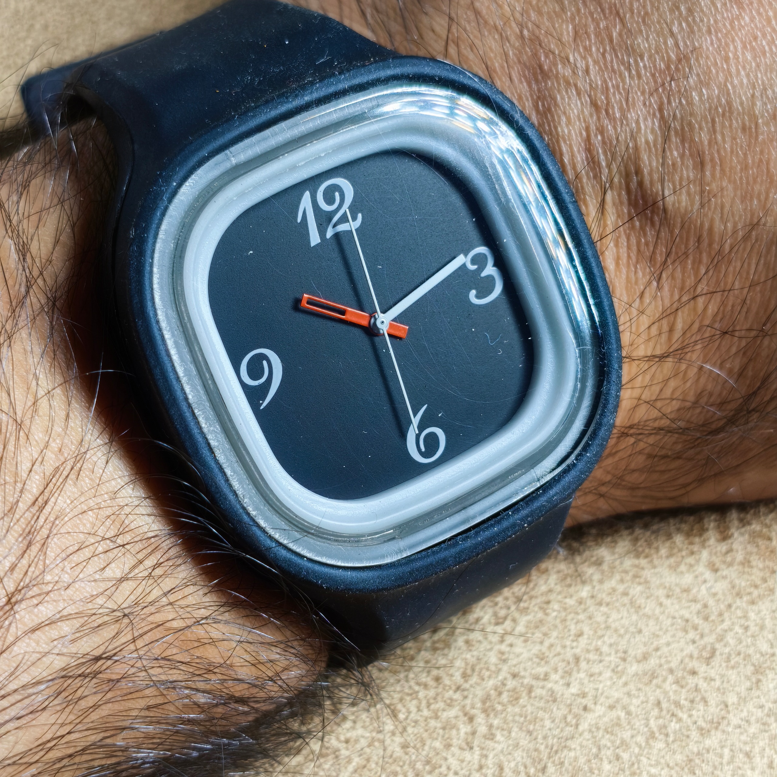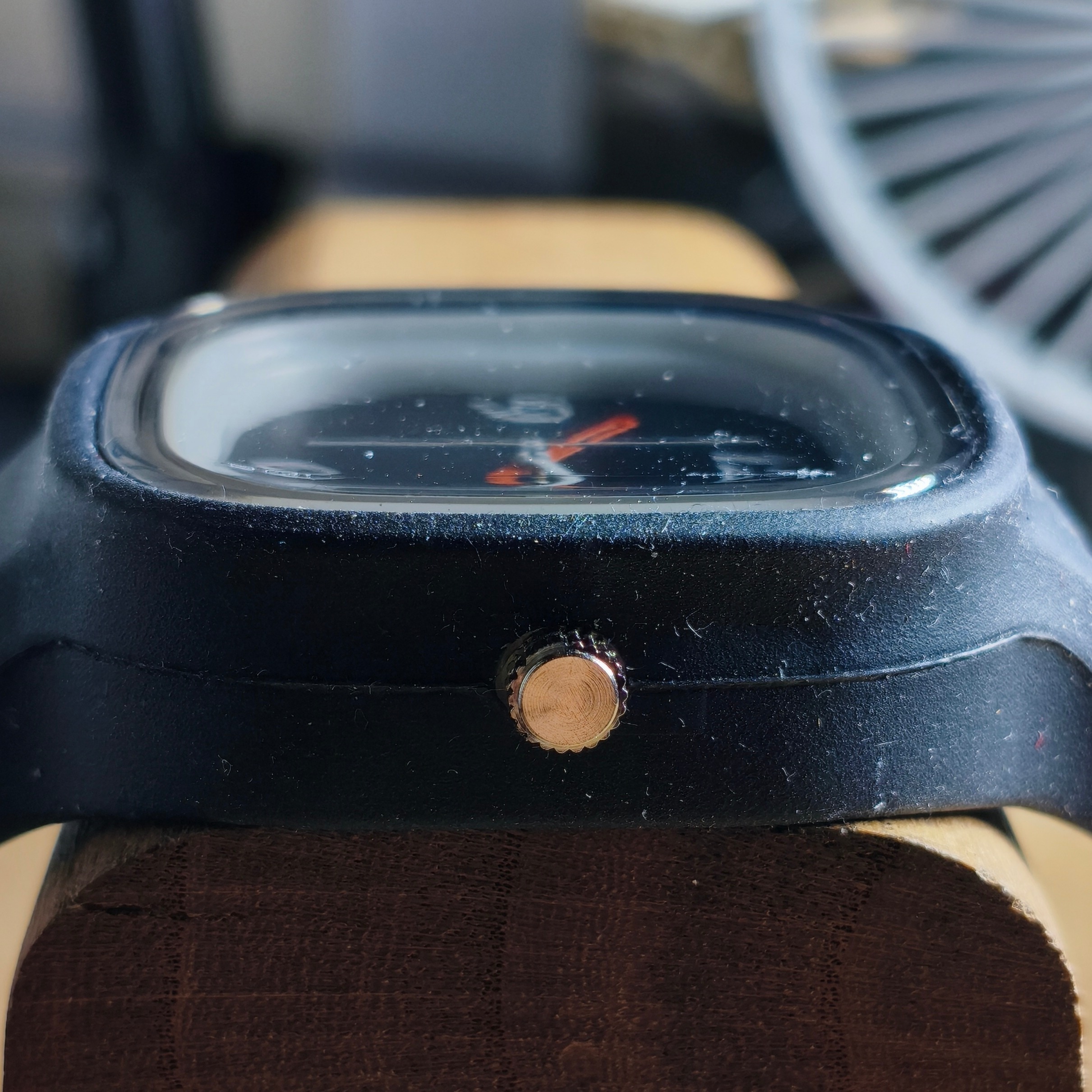 مخصوص کوهنوردی، شنا، کلا محافظ سیلیکنی محفظه مربعی ساعت را پوشانده و برای تکامه های شدید ثانیه شمار دو طرفه بکار رفته
